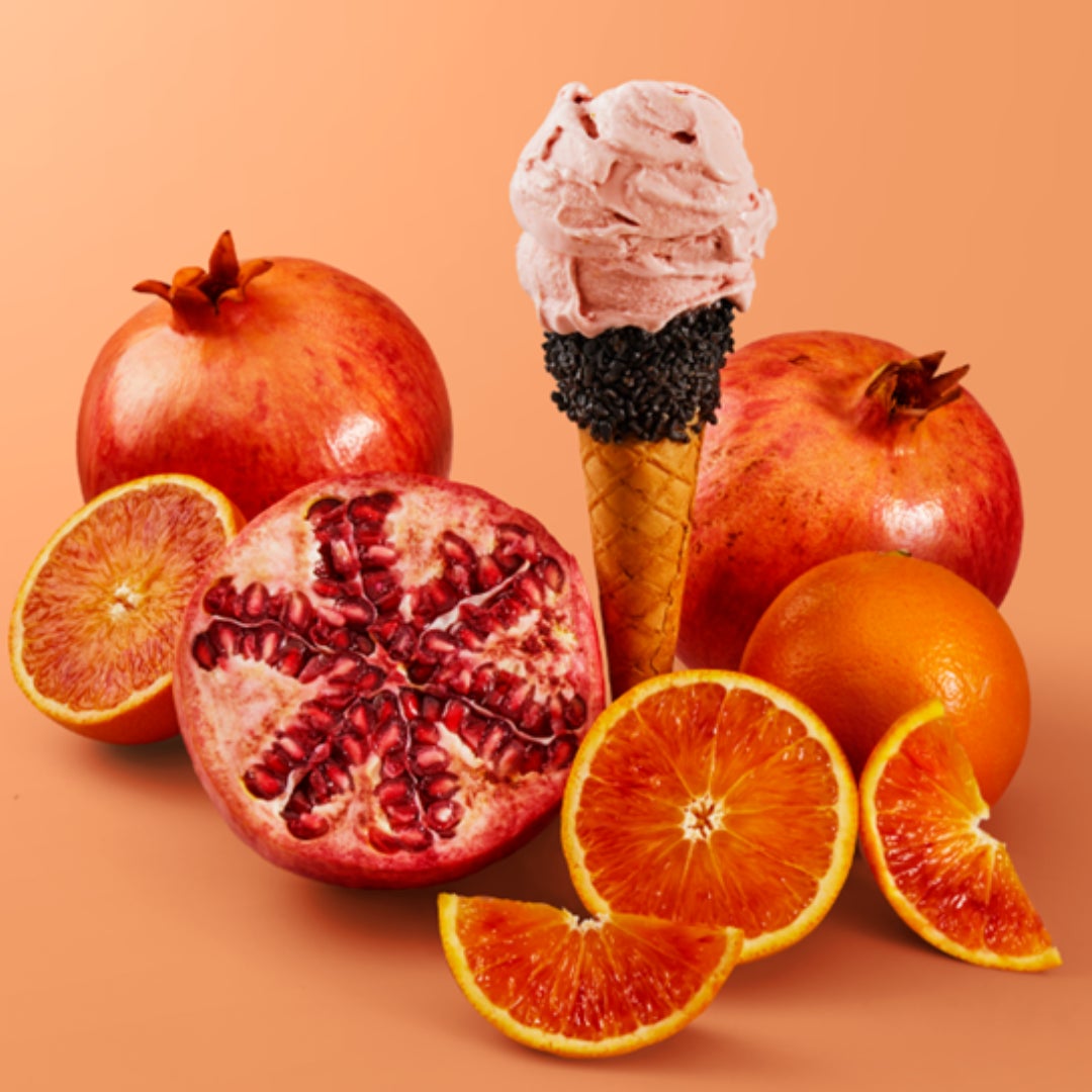 「オータムエッセンス」はジューシーなオレンジとザクロを合わせた、ほろ苦い大人の味わいのジェラートフレーバー、ウォーターベースのさっぱりとした後味が特徴のヴィーガンフレンドリーのソルベです。オレンジのさわやかな風味と熟したザクロのビターな風味がミラノ生まれのリキュール「カンパリ」を思わせます (ジェラートにはアルコールを使用していません) 。