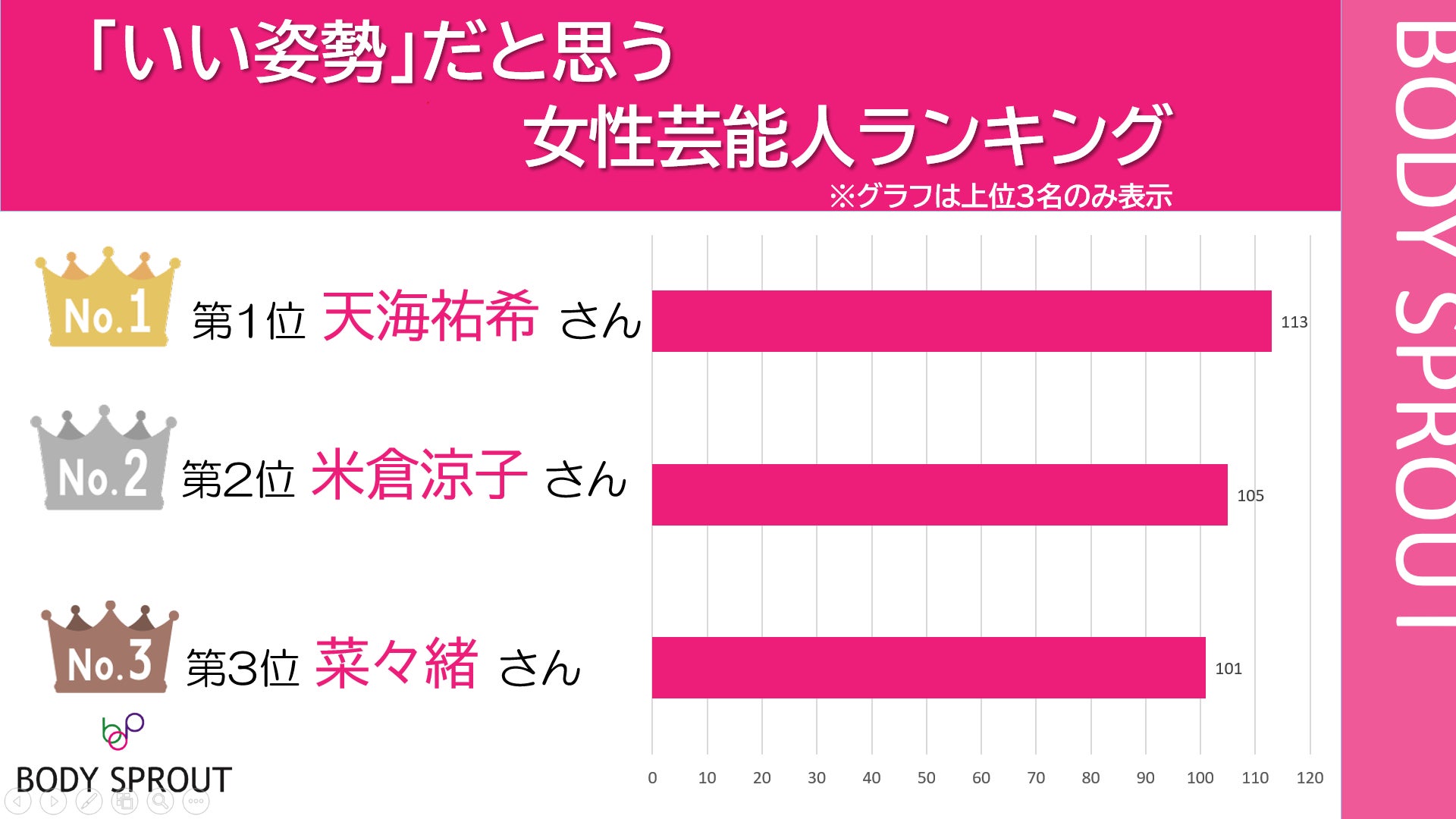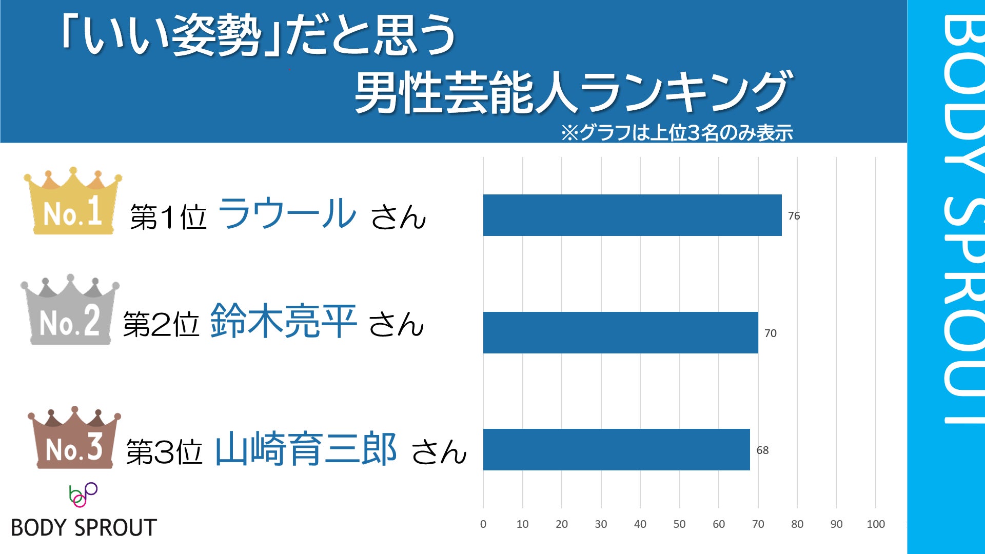 整骨院・整体院事業、姿勢ケアアイテムのD2C事業などを通し「治る環境づくり」を推進するヘルスケア企業の株式会社ボディスプラウト(神奈川県川崎市・代表取締役 小林篤史)は、11月1日の「いい姿勢の日」にちなみ、いい姿勢だと思う芸能人について、全国の男女417名を対象にアンケート調査を行いました。2021年からアンケート調査・ランキングを発表し、本年で4回目となります。