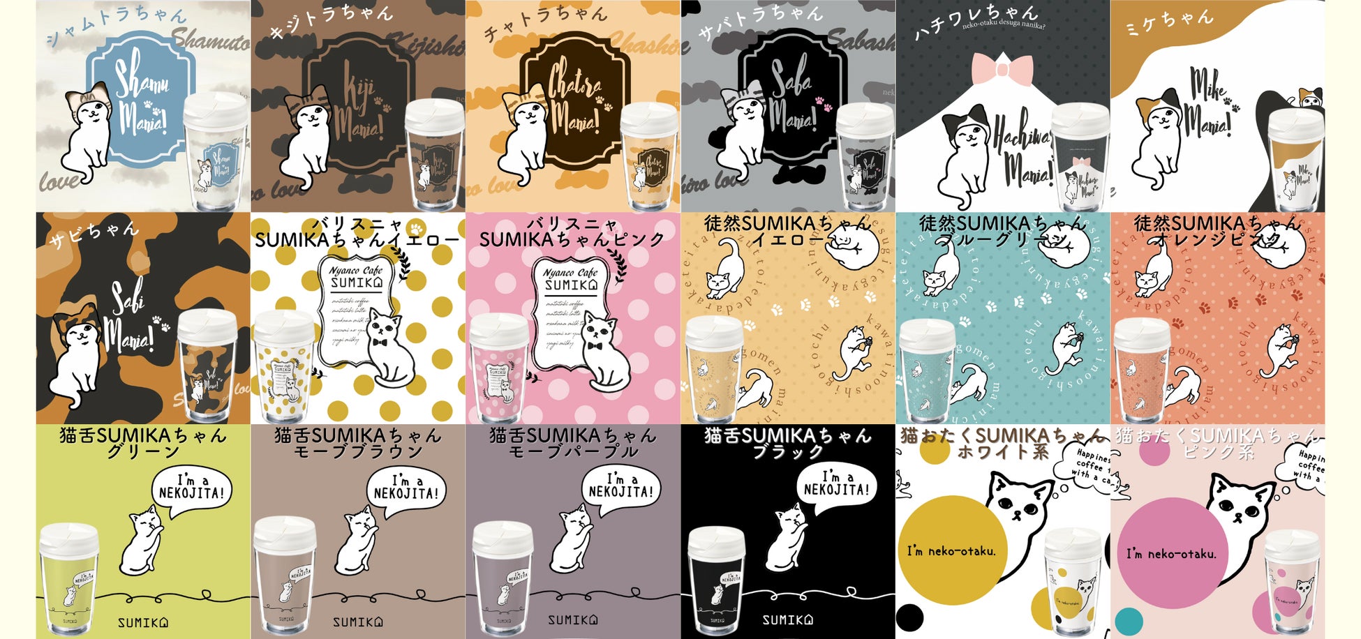 公式キャラクター"SUMIKAちゃん"がサビ柄やサバトラ柄などの帽子をかぶったりカフェ店員に扮したり…「あったらいいな」をカタチにしたところ、全18種類ものラインナップとなりました!