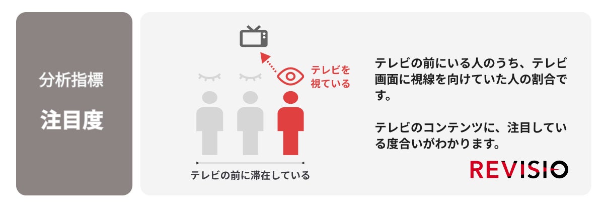 REVISIOでは、視聴者がテレビに目線をどれだけ向けたかというデータを独自に取得しております。テレビ番組では毎分、CMでは毎秒で視聴データを取得しております。今後も注目のテレビ番組やCMの分析を行う予定ですので、ぜひご確認ください。