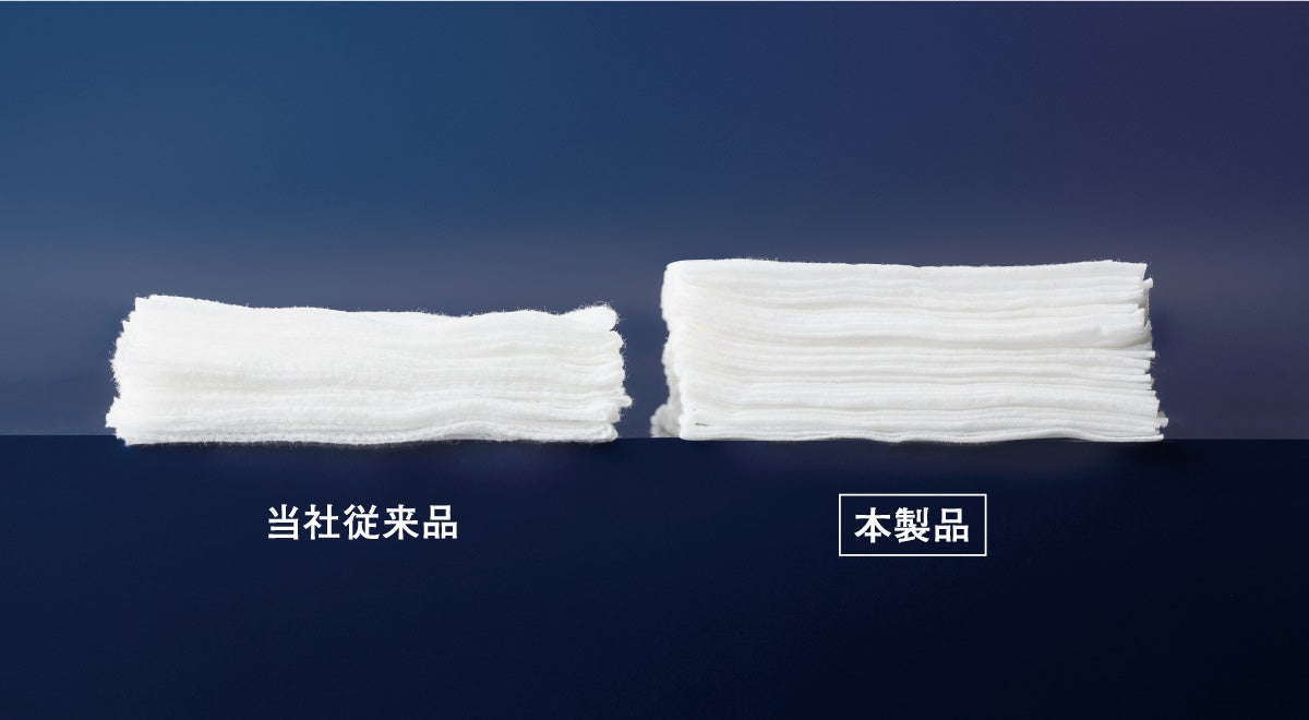 厚みが約160%*にUPし、ふっくらやわらかな肌あたりでやさしい使い心地です。