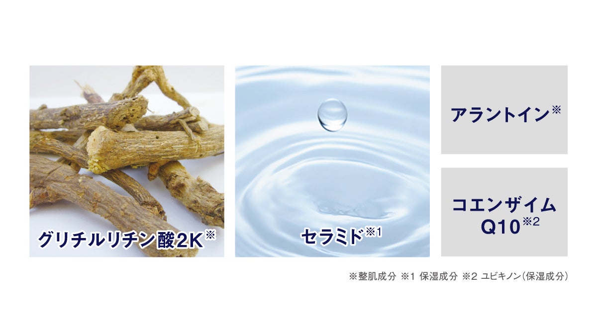 アラントイン※やグリチルリチン酸2K※、セラミド※1、コエンザイムQ10※2などの厳選した美容成分も配合し、汗やベタつきをオフするだけではなく、保湿しながらしっとり肌に保ちます。
