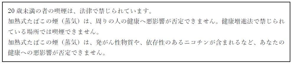 BATグループでは、たばこ製品のマーケティングを適切に実施するために国際的な自主規準を設定しています。そのため消費者に対するたばこ製品に関するすべてのコミュニケーションには、20歳未満の方へのコミュニケーションをお控えいただくとともに、「喫煙と健康に関する注意文言」を表示することを関係各位にお願いしております。加熱式たばこに関しては、記事掲載していただく際には、「健康に関する注意文言」が表示されるようご配慮いただきたく存じます。ご協力の程、何卒よろしくお願い申し上げます。