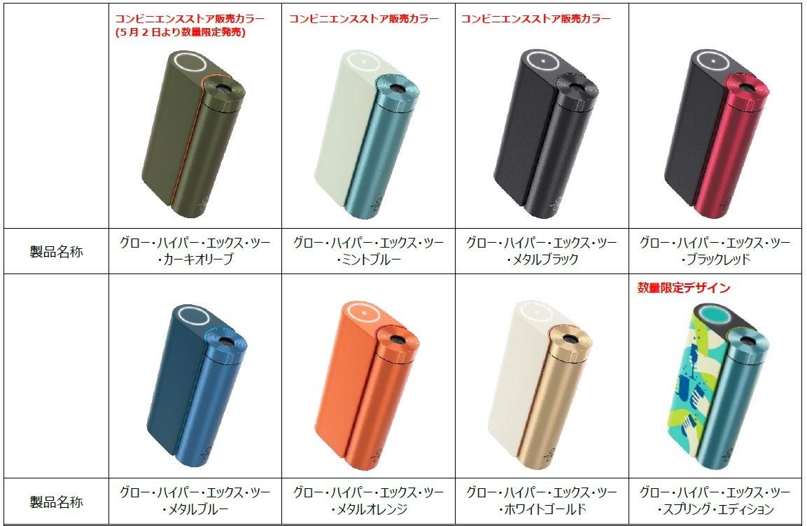BATジャパン(本社:東京都港区赤坂、社長:エマ・ディーン、正式社名:ブリティッシュ・アメリカン・タバコ・ジャパン合同会社)は、新世代の加熱式たばこ専用デバイス「glo(TM) hyper X2(グロー・ハイパー・エックス・ツー)」から、オンライン等で販売中の「グロー・ハイパー・エックス・ツー・カーキオリーブ」を5月2日(火)より順次、全国の主要コンビニエンスストア(※1)でも数量限定で発売します。