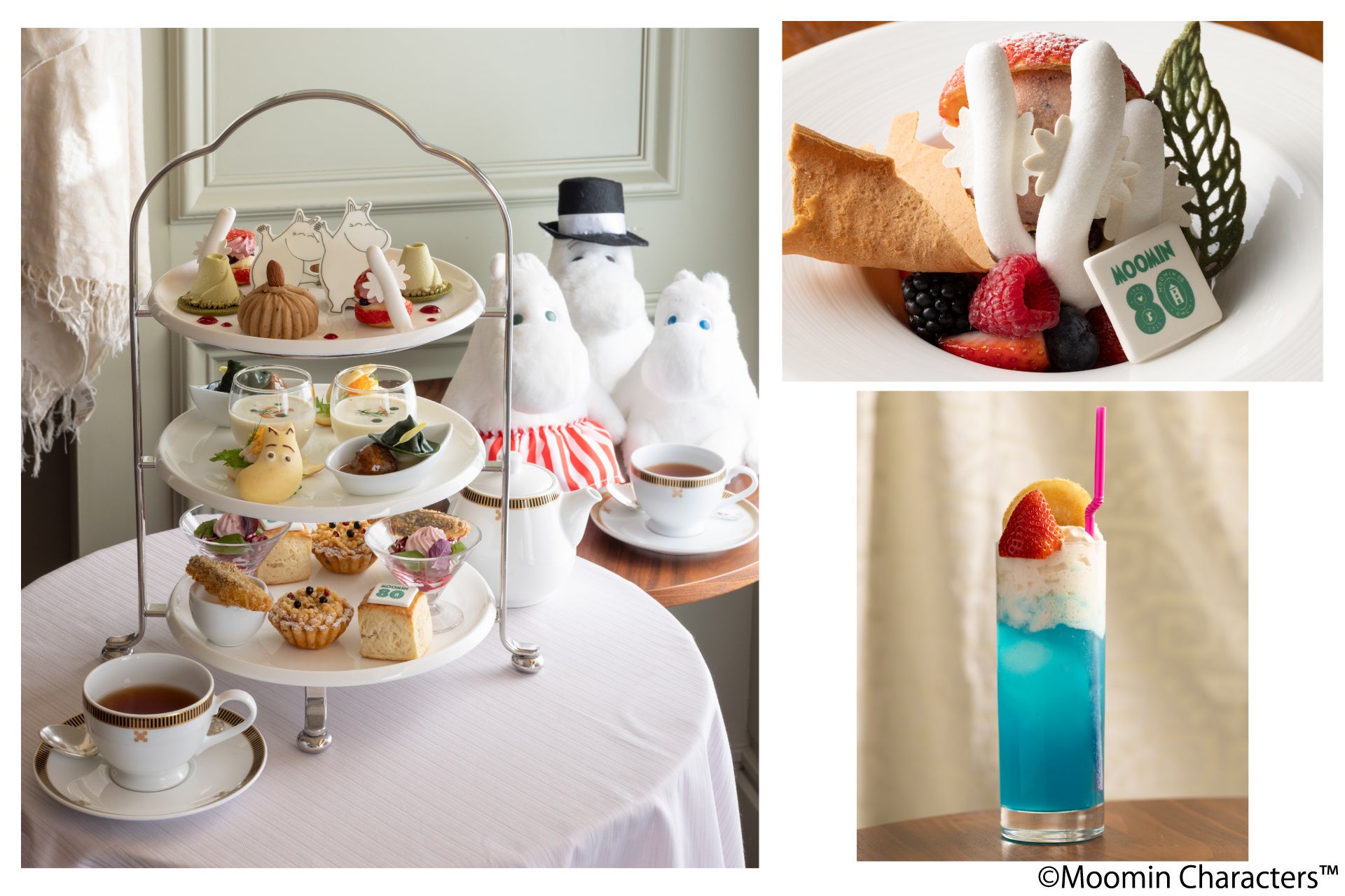 帝国ホテル 東京にて、ムーミン80周年を記念した特別なコラボレーションを2025年1月15日(水)から3月16日(日)まで実施します。ムーミンの物語や登場キャラクターたちから着想を得たメニューが楽しめます。ムーミン谷の雰囲気や物語のエピソードを感じられる見た目にも華やかな「ムーミンアフタヌーンティー ~ようこそ!ムーミンやしきへ~」をはじめ、色とりどりのデザートやムーミンやしきをイメージしたノンアルコールカクテル(モクテル)が登場します。さらに、帝国ホテル 大阪でも2025年5月7日(水)から6月30日(月)に、「ムーミン」とのコラボレーションアフタヌーンティーを提供予定です。