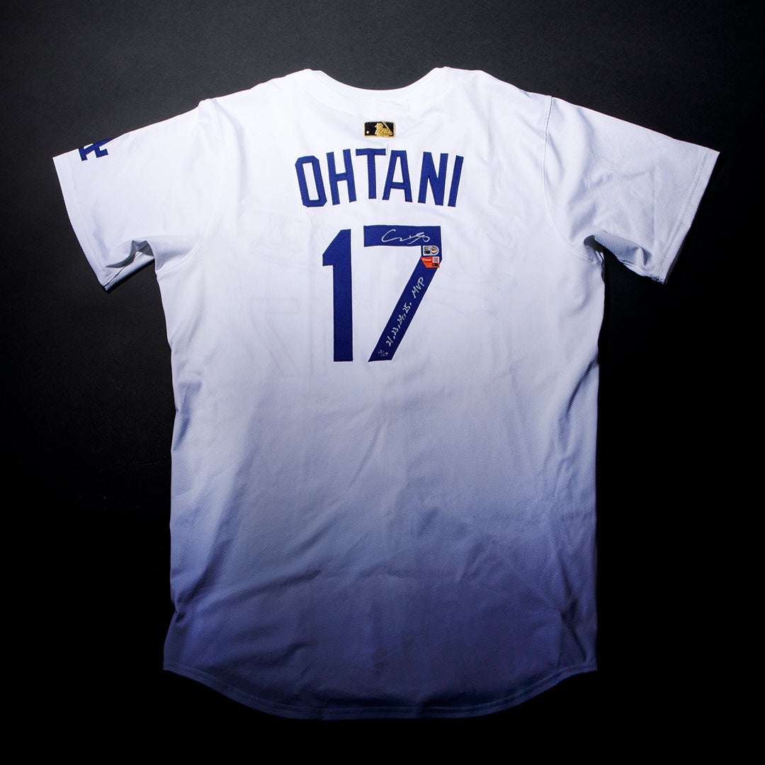 伝説的な2024年シーズンを永遠に刻むメモラビリアといえる本商品には、大変珍しい漢字で書かれた直筆サインのほかに、27号ホームランを意味する"HR #27"や2024年ナショナルリーグMVP受賞を示す"24 NL MVP"の直筆メッセージが施されています。胸元の汚れなど、試合の痕跡を色濃く残す至高のアイテムをぜひ一度その目でご覧ください。