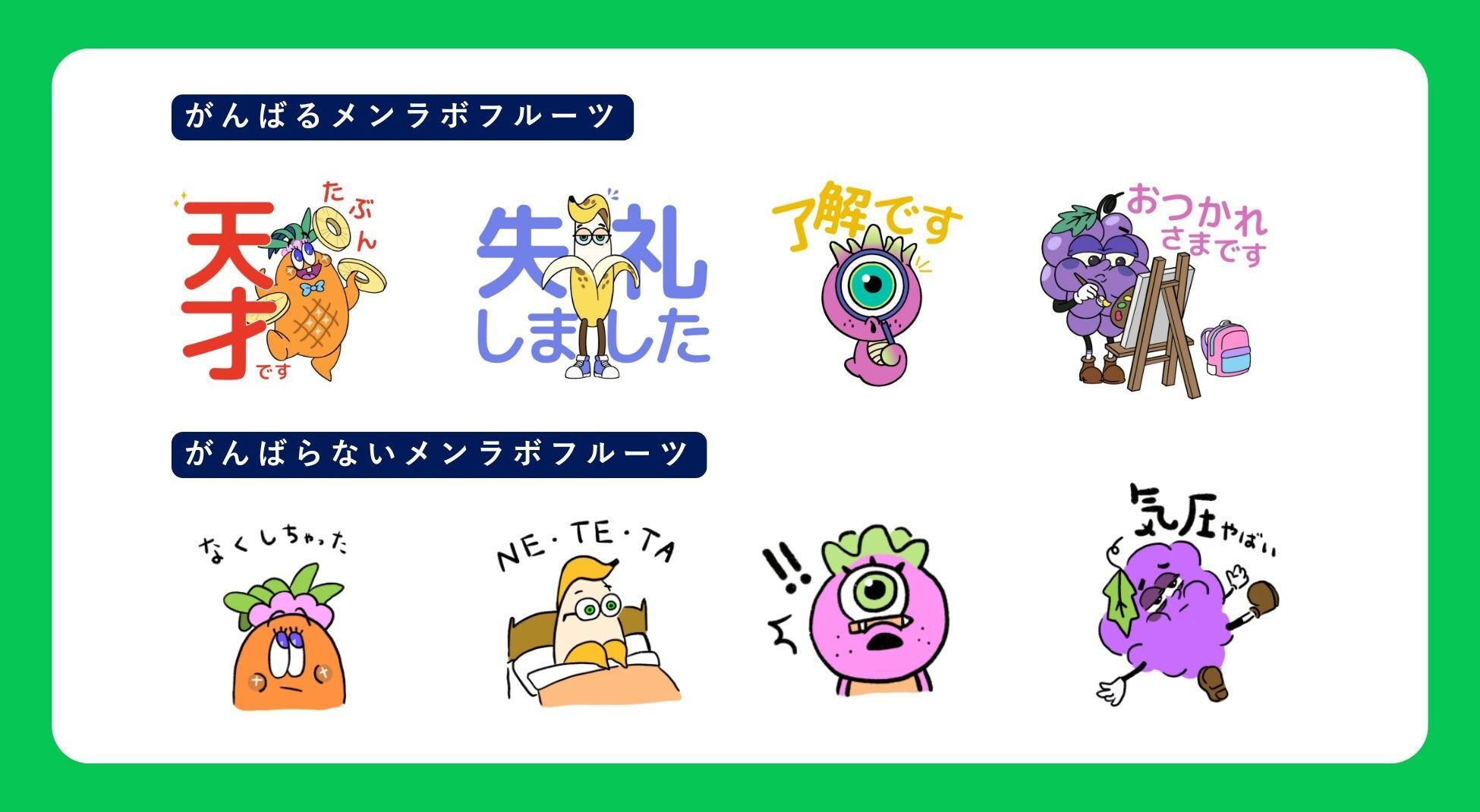 初の公式LINEスタンプ 毎日使える「がんばるメンラボフルーツ」と「がんばらないメンラボフルーツ」の2つの公式LINEスタンプを同時リリース!