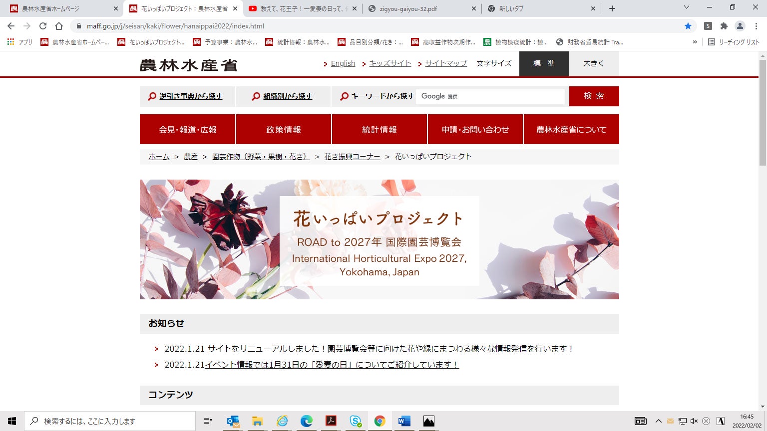 農林水産省は、花きの需要喚起や2027年に横浜市において開催予定の国際園芸博覧会に向けた機運を高める活動を応援・発信するため、「花いっぱいプロジェクト
