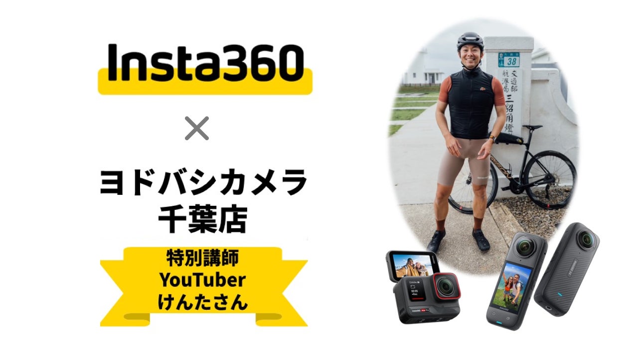 2024年12月21日(土)、22日(日)に、ヨドバシカメラ千葉店にてInsta360カメラ体験会&大人気YouTuber「けんたさん」による自転車撮影&編集ワークショップを開催いたします。
