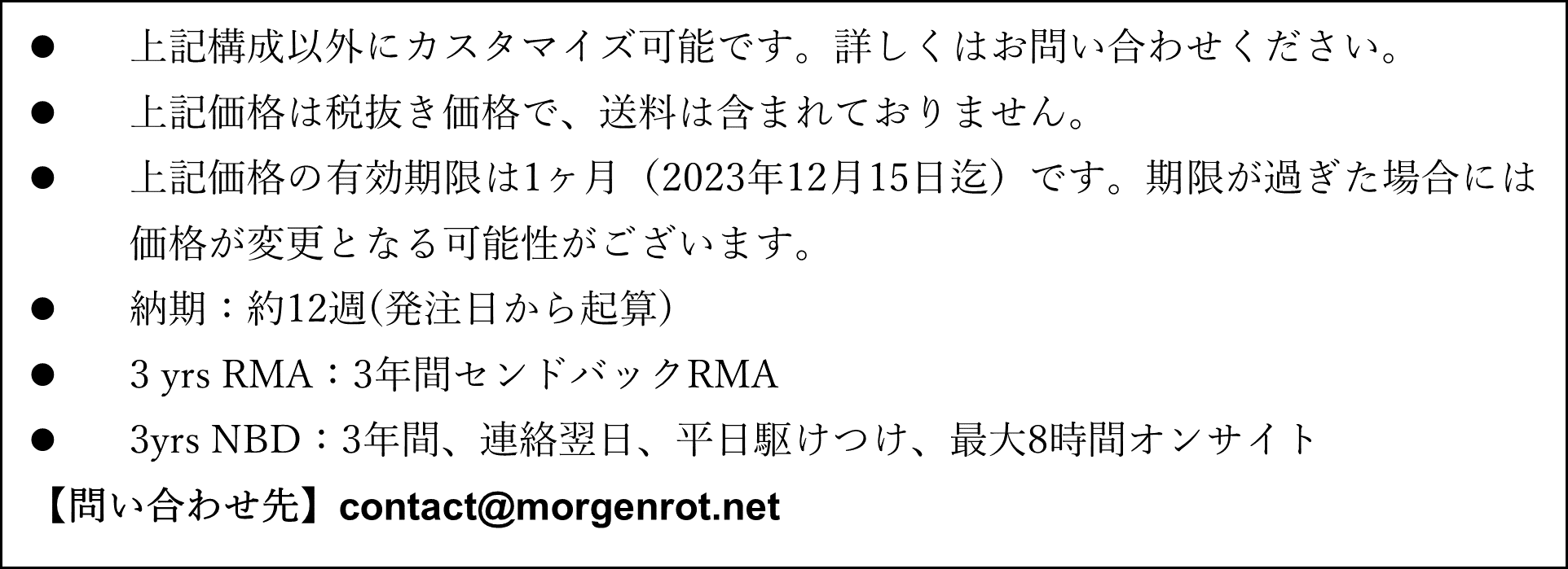 モルゲンロット株式会社(本社:東京都千代田区、代表取締役CEO/CTO井上博隆、以下モルゲンロット)は、生成AI・LLM・シミュレーション等において必要不可欠なGPUサーバーを決算価格で販売いたします。なお、2024年3月末までに納品が可能な製品となります。