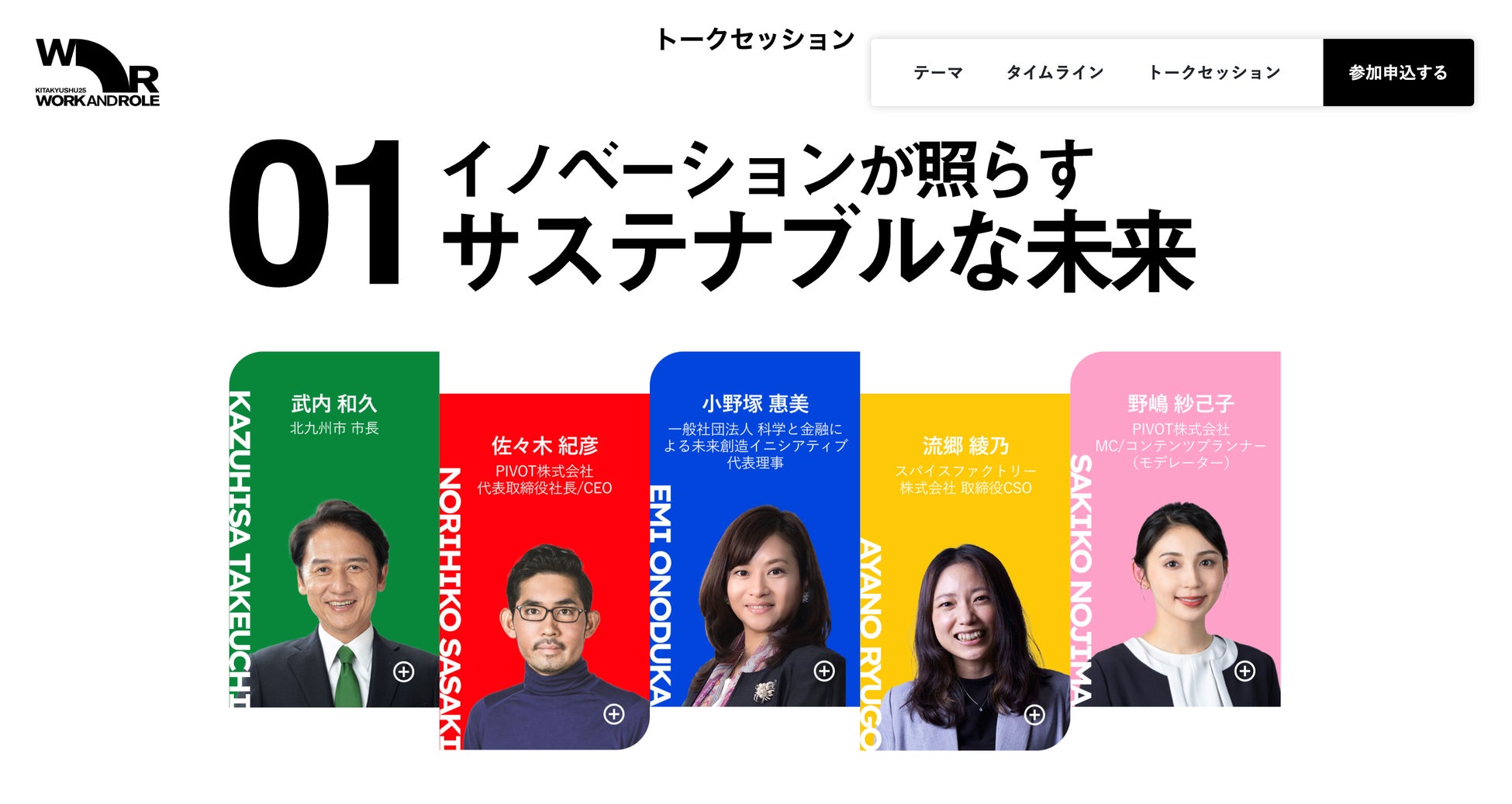 ■ WORK AND ROLE 2025とは 『WORK AND ROLE』は2023年に北九州市がスタートしたサステナビリティをテーマとしたイベントで、今年度のサブテーマは「ものづくり」「グリーン」「ソーシャルインパクト」です。当日は採択企業26社によるピッチのほか、著名な専門家や企業家によるトークセッション、交流会などが開催されます。