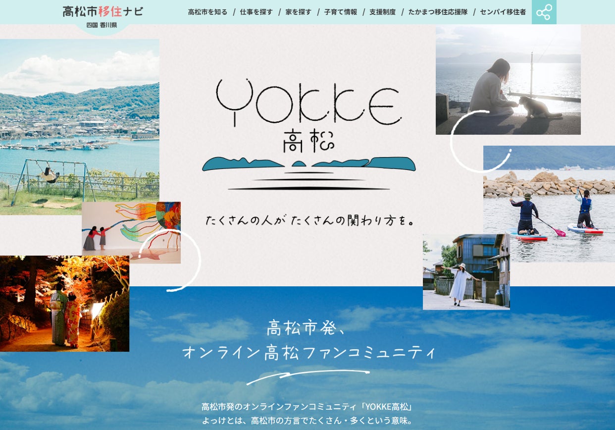 高松市では人口減少や都市部への流出が進む中、移住・定住のみならず「関係人口」の創出・拡大を重要施策の一つとして掲げています。そこでオンラインファンコミュニティ「YOKKE高松」を立ち上げ、地域の魅力を発信し続けることで、高松ファンを全国から募る取り組みを推進してきました。