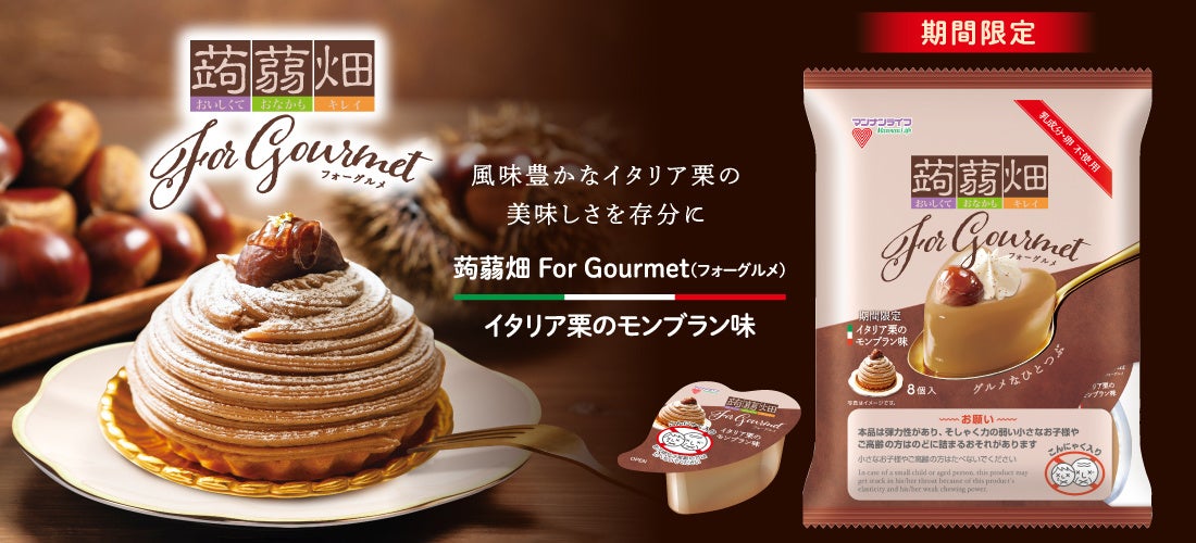 株式会社マンナンライフ(本社 群馬、社長 鶴田一裕)は、新商品「蒟蒻畑フォーグルメ イタリア栗のモンブラン味」を9月2日(月)に全国発売致します。