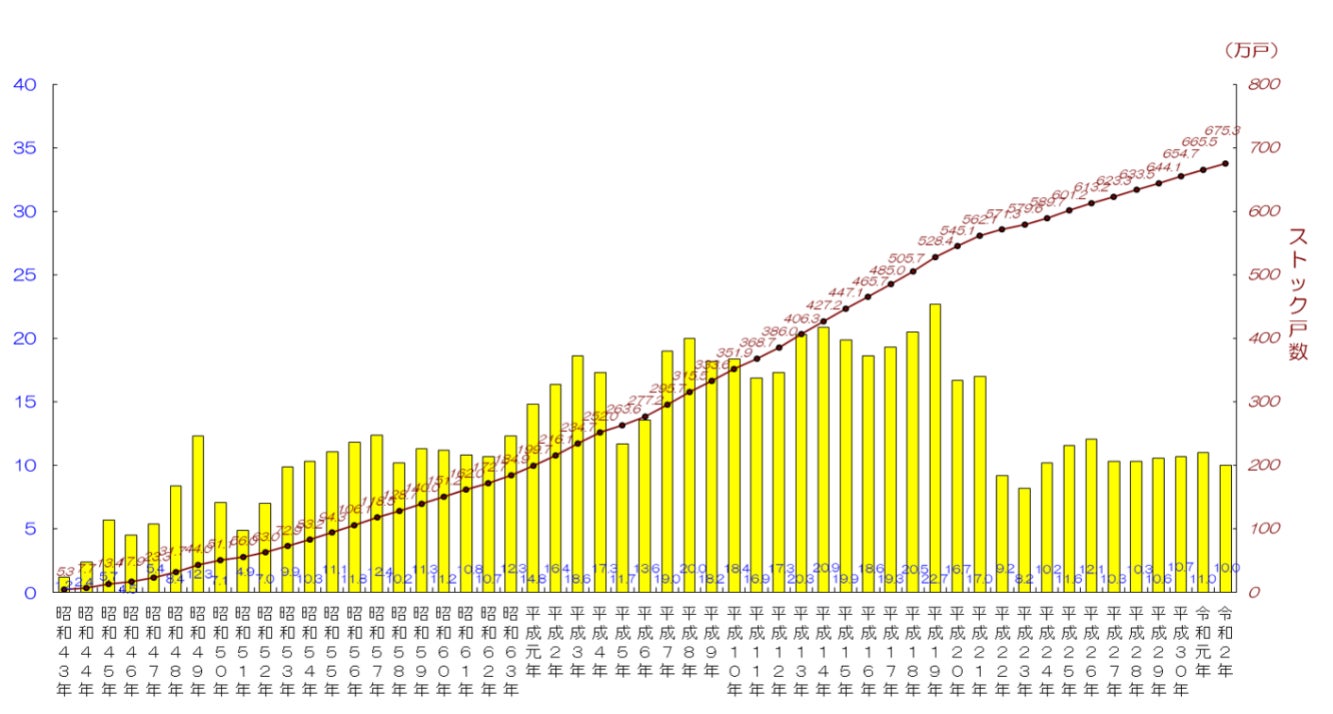 ・マンションストック総数は、約675.3万戸(2020年末時点)。