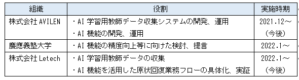 なお、AI機能の開発については、株式会社AVILENとの連携、慶應義塾大学 大学院経営管理研究科 高橋大志教授および研究室メンバーとの共同研究(2022年1月31日締結済)を通じて実施します。