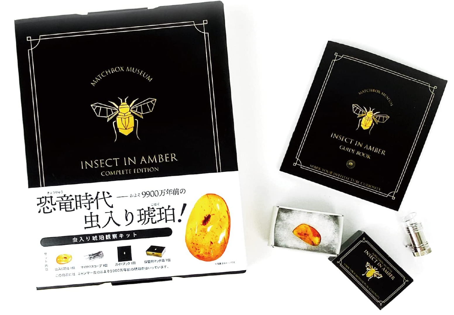 2022年に新たに発売した「虫入り琥珀のコレクション」は、130種類中たった1種類しか入っていなかった“虫入り琥珀”が必ず手に入るシリーズです。世界最小級マイクロスコープやガイドブックが付いた「完全版 3,500円(税込)」をご購入いただければ、本格的な琥珀観察が楽しめます。