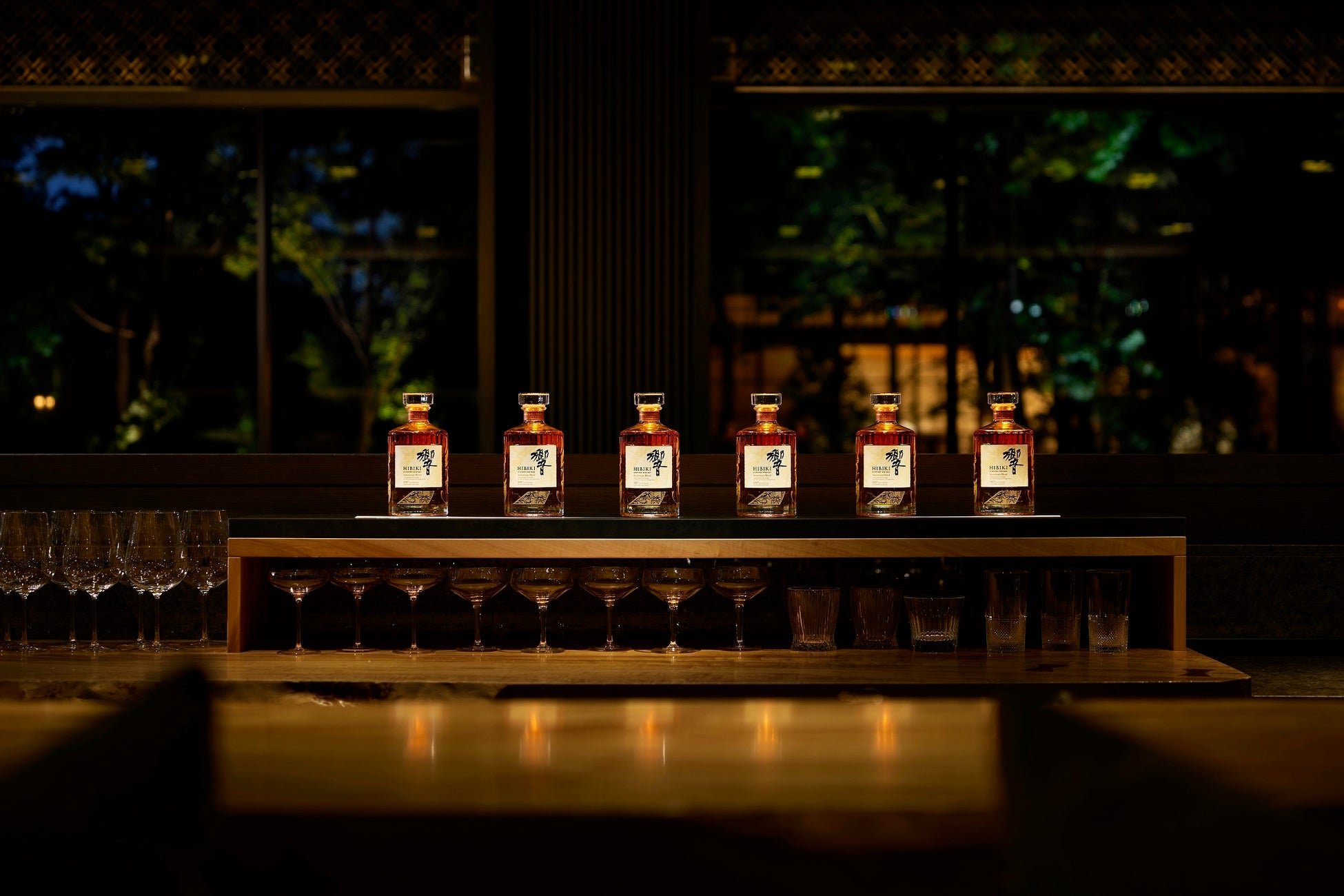 提供の場は、二十四節気をテーマに造られた日本庭園を臨む「THE GARDEN BAR」。期間中、店内には日本の美意識が未来へ繋いでいく想いを込めてデザインされた「響 サントリーウイスキー100周年記念 -Anniversary Blend-」が美しくディスプレイされた空間演出が施されます。