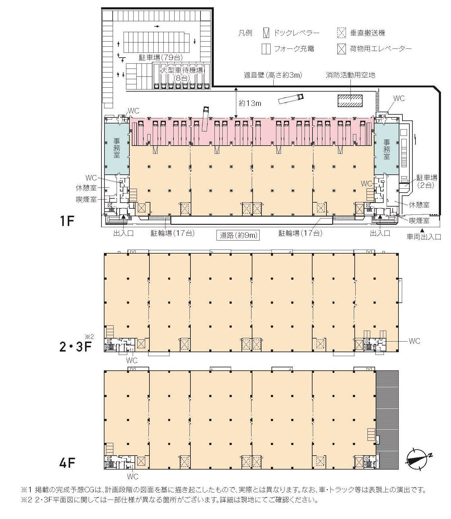 垂直搬送機:4基(最大積載容量:1500㎏/最大荷姿:1800W×1500L×2500H)
