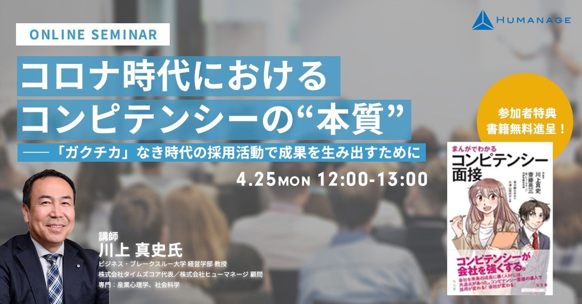 本セミナーでは、川上 真史 氏(ビジネス・ブレークスルー大学 教授)を講師に迎え、コロナ禍=これまでと違う環境下だからこそ必要な「人材を見極める視点」について解説します。