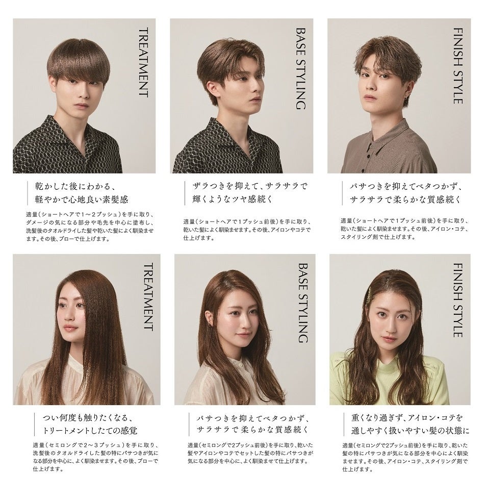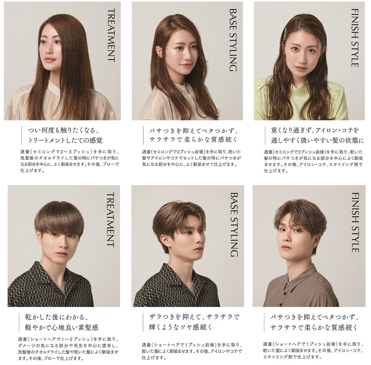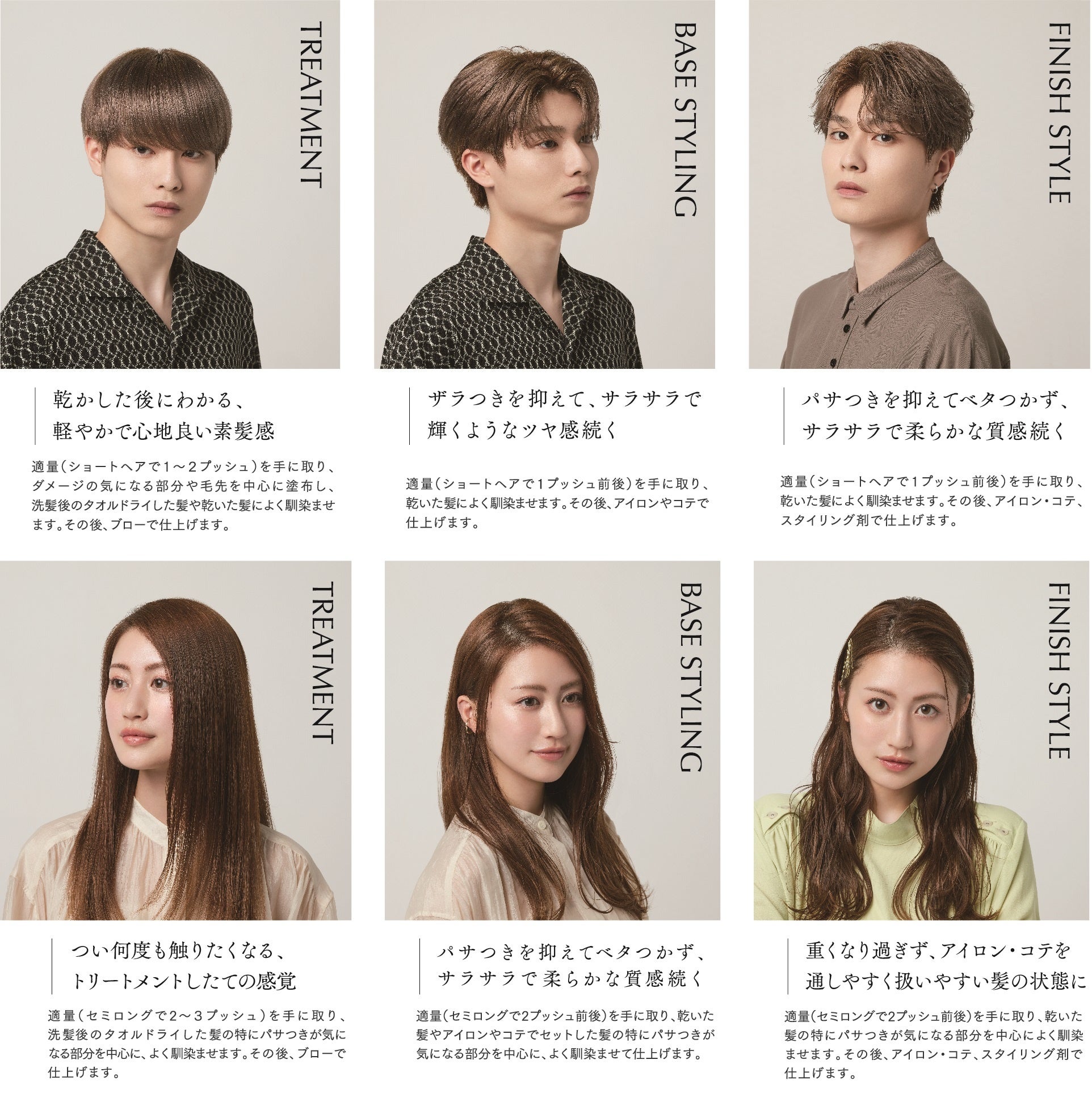 また今回は、同ブランドのシリーズの中でもより女性もターゲットとしており、「軽やかでベタつかない素髪感」がありながらもトリートメントしたてのような「滑らかな指通り・柔らかい手触り」が持続する、新しい感覚をお届けします。