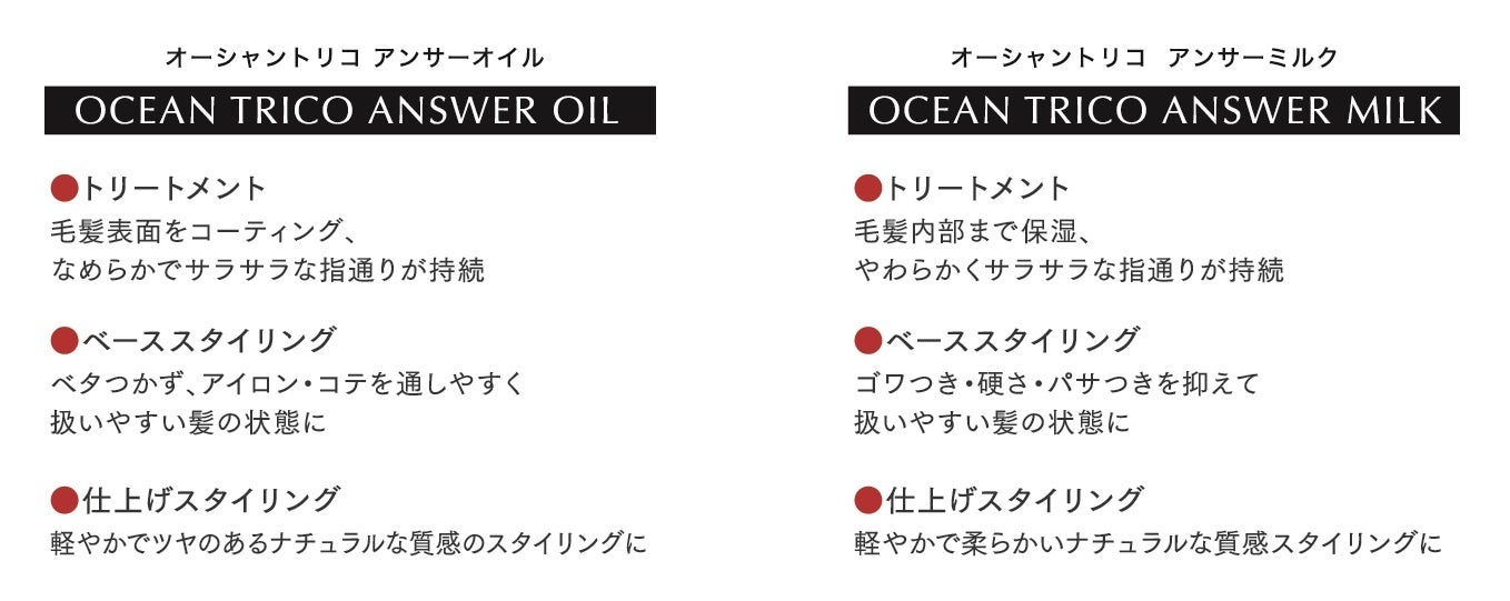 美容室オーシャントーキョープロデュースの「オーシャントリコ」から待望の傑作※1「アンサーオイル」「アンサーミルク」が登場。