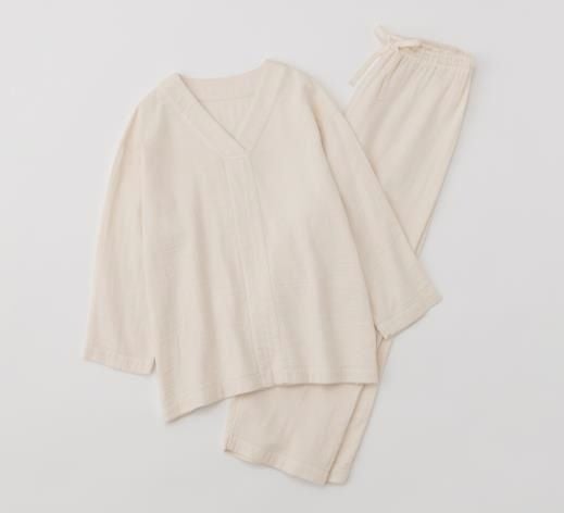 ガーゼパジャマは縫い目のストレスを極力感じさせないようデザインされたかぶるタイプのセットアップです。
