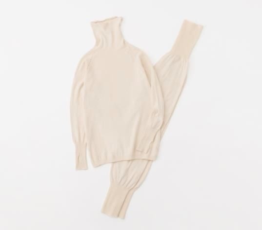 無縫製3Dニットパジャマは鼻までカバーできるので喉の乾燥対策にもおすすめです。肌触り重視で天竺編みの表目を肌側にしました。