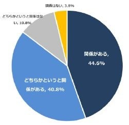 オーガニックコットンのパジャマを着用した経験が「ある」と回答した方130名を対象に、オーガニックコットンパジャマと睡眠の質に関係があると思うか質問したところ、85.4%が「関係がある」(関係がある:44.6%、どちらかというと関係がある:40.8%)と回答しました。