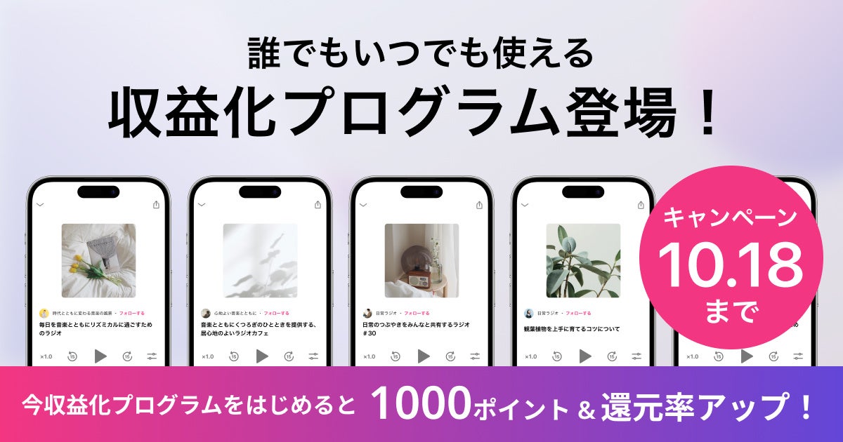【新規ユーザー様向け】収益還元額アップ&stand.fmで使えるポイントプレゼントキャンペーン!