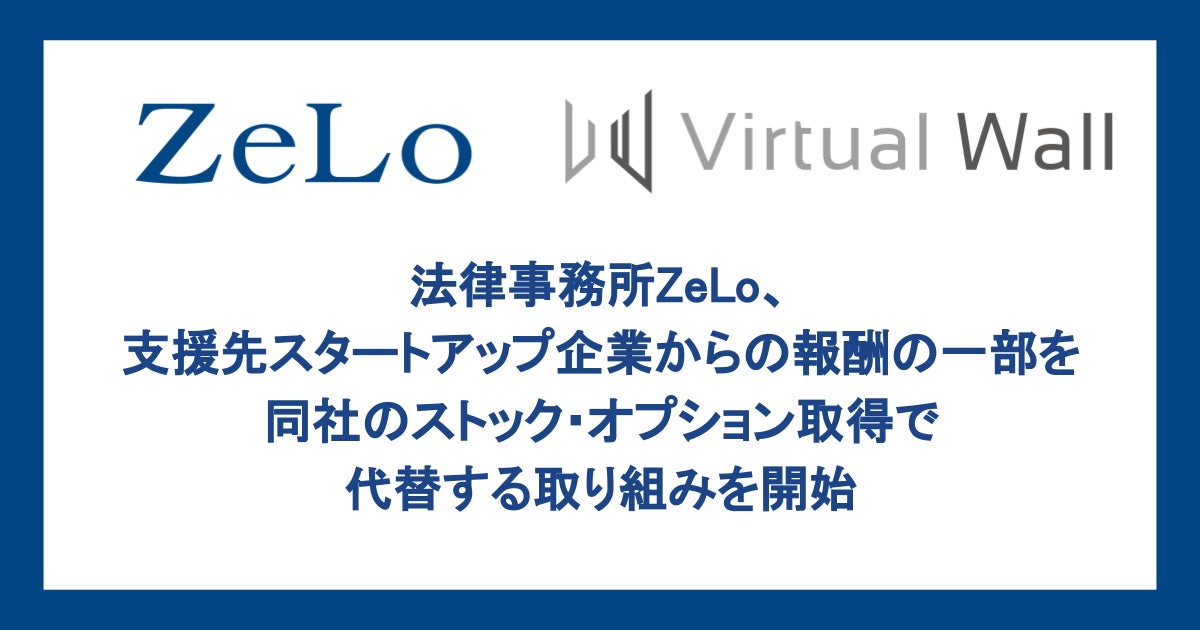 この度、法律事務所ZeLo・外国法共同事業(所在地:東京都江東区、代表弁護士:小笠原匡隆、以下「法律事務所ZeLo」https://zelojapan.com/) は、支援先である株式会社Virtual Wallへのリーガル支援に対する報酬の一部を、同社のストック・オプション取得で代替する取り組みを行いました。金融関連システム・ソフトウェアの開発・運用などのフィンテック事業を手掛ける株式会社Virtual Wallと、新規事業のリーガル支援にも強みを有している法律事務所ZeLoとの今回の取り組みをきっかけに、最先端領域で日々挑戦を続ける企業にとって、リーガル支援を受けるハードルが解消できるよう努めてまいります。