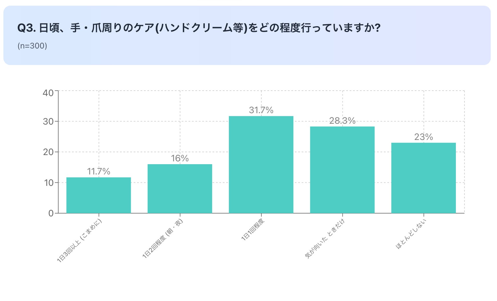 日頃、手・爪周りのケア(ハンドクリーム・ネイルオイル等)をどの程度行っているか調査しました。