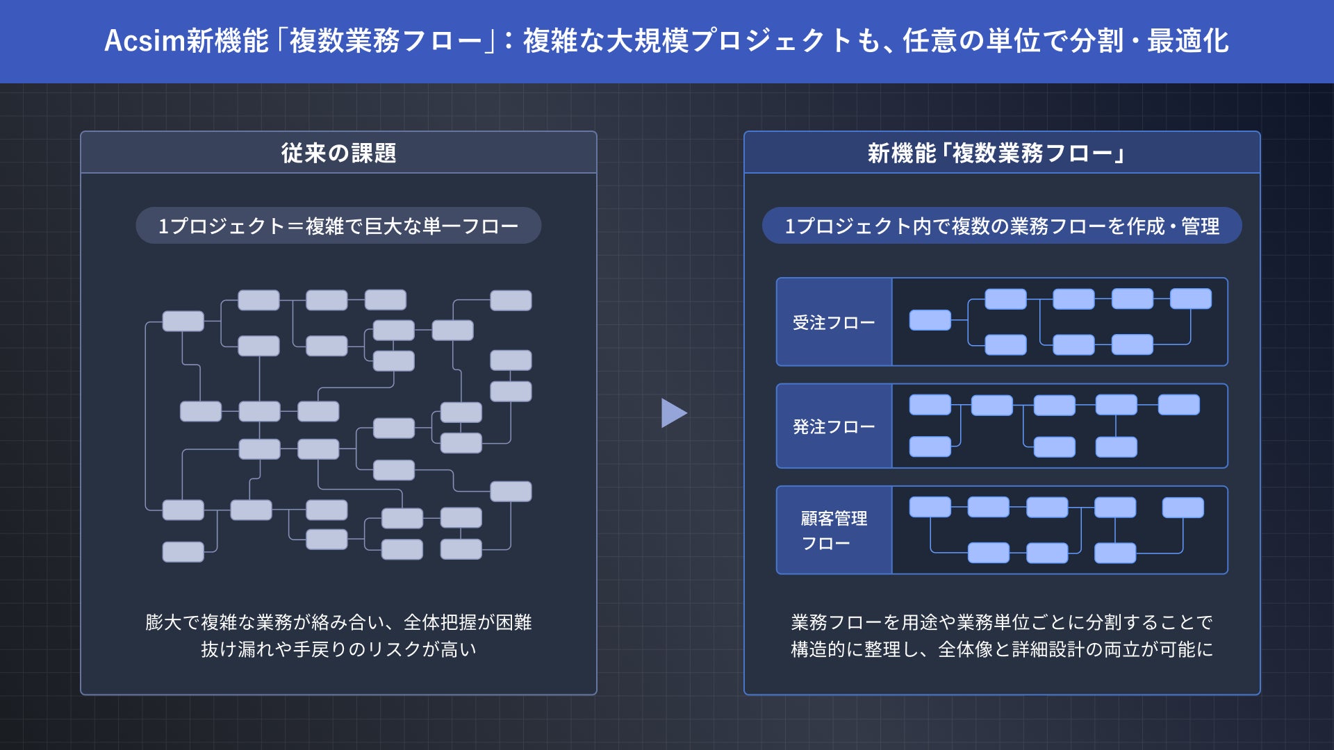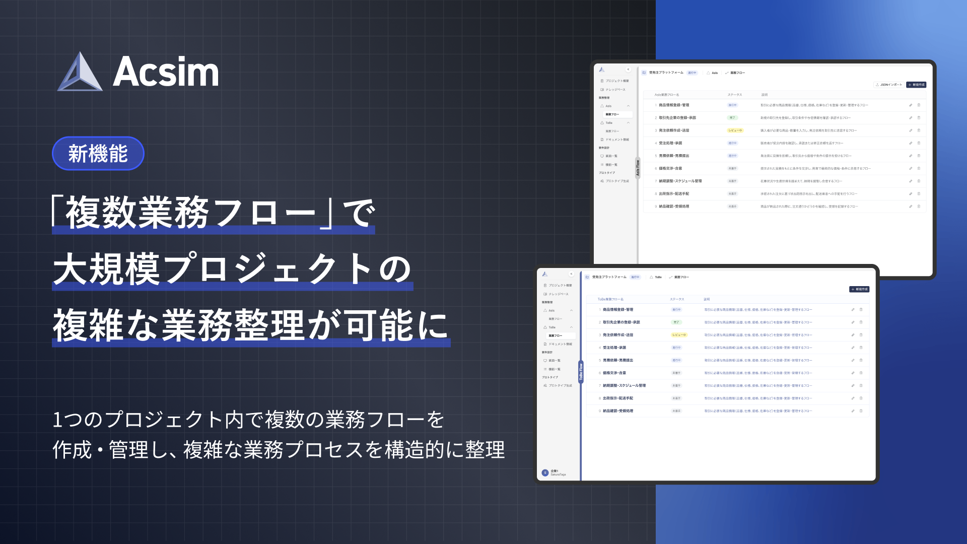 AI要件定義「Acsim」、大規模プロジェクトの複雑な業務整理ができる新機能「複数業務フロー」をリリース