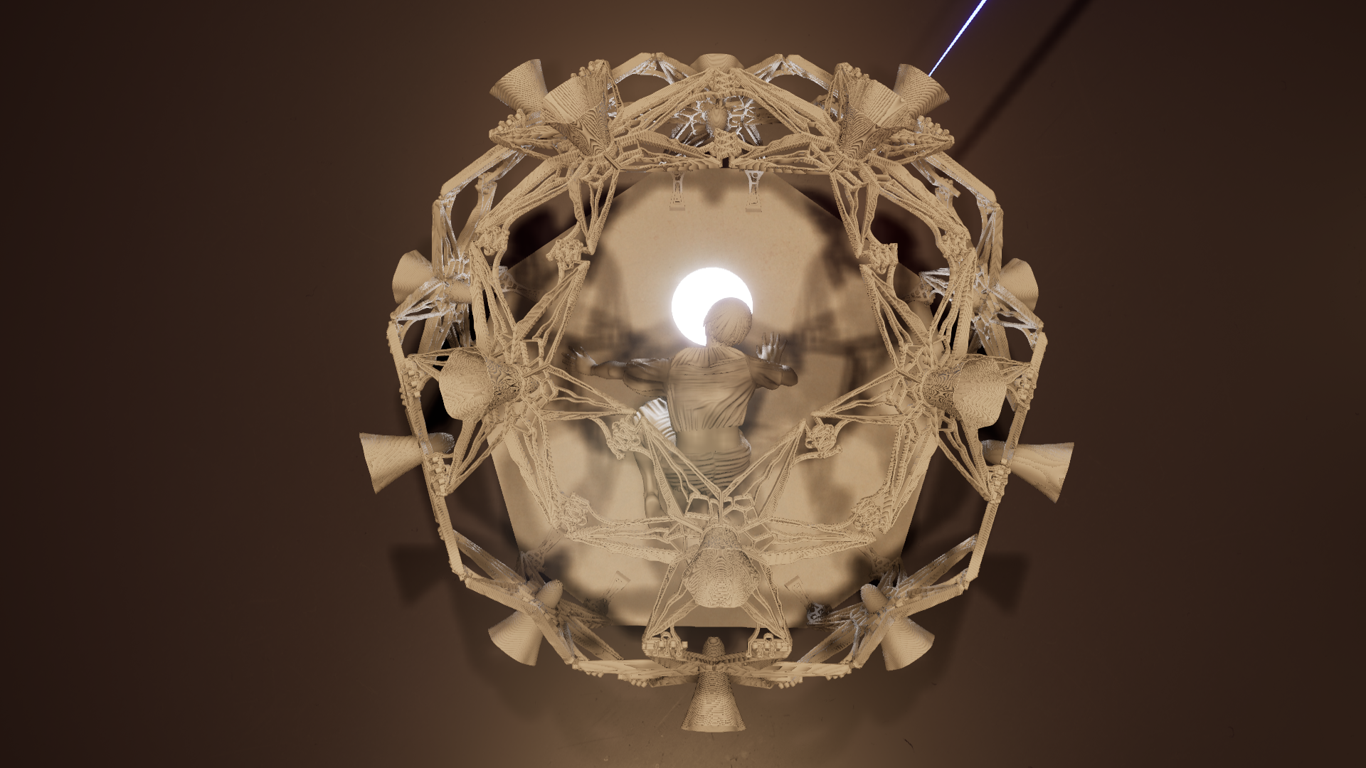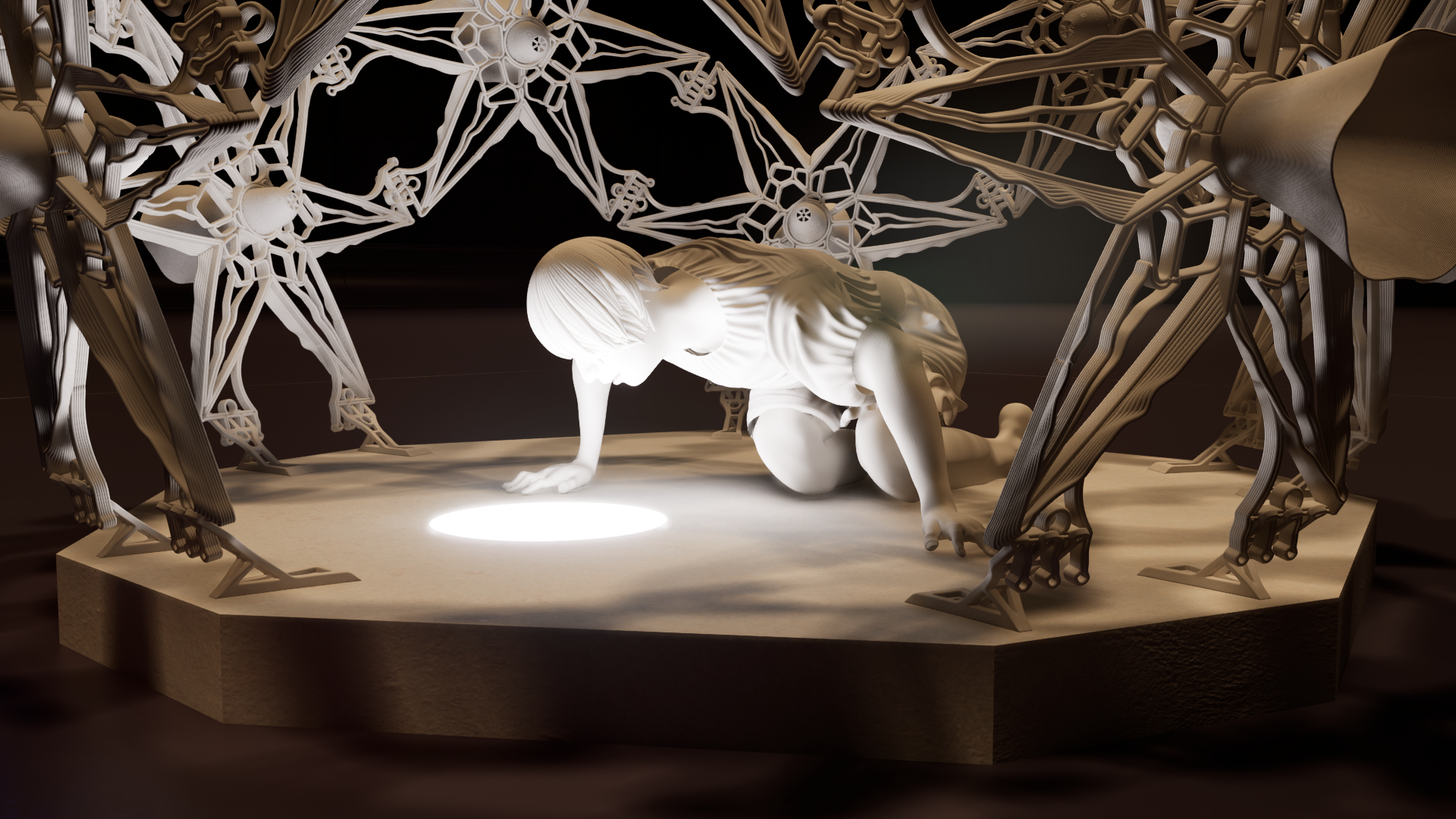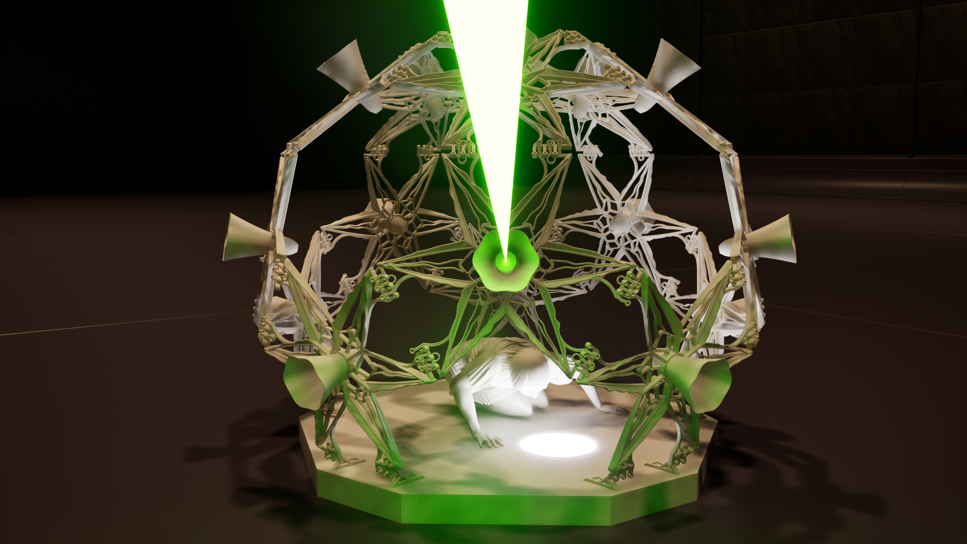 「今まで、鏡をテーマに制作してきましたが、今回、ExtraBoldのエンジニアの方々との協創により、ナルキッソスをモチーフにした作品を発表します。人体やそれを纏う構造体をアイデアや、3Dスキャンから3Dプリントまで一貫してコミュニケーションを重ね、、新しい表現へ拡張できました。ぜひご覧ください。」