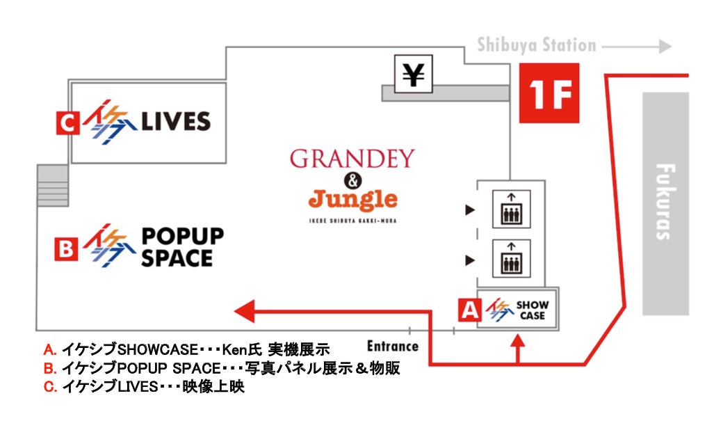 下記日程に関しましては、イケシブLIVESでのイベント開催に伴い、イケシブPOPUP SPACE(イケシブ店内)での写真パネル展示およびライブ映像上映を休止とさせていただきます。イケシブ外観よりご覧いただけるイケシブSHOWCASEでの実機展示は、休止日はございません。また、写真パネル展示およびライブ映像上映の休止日は、物販をグランディ&ジャングル1Fにて販売いたします。