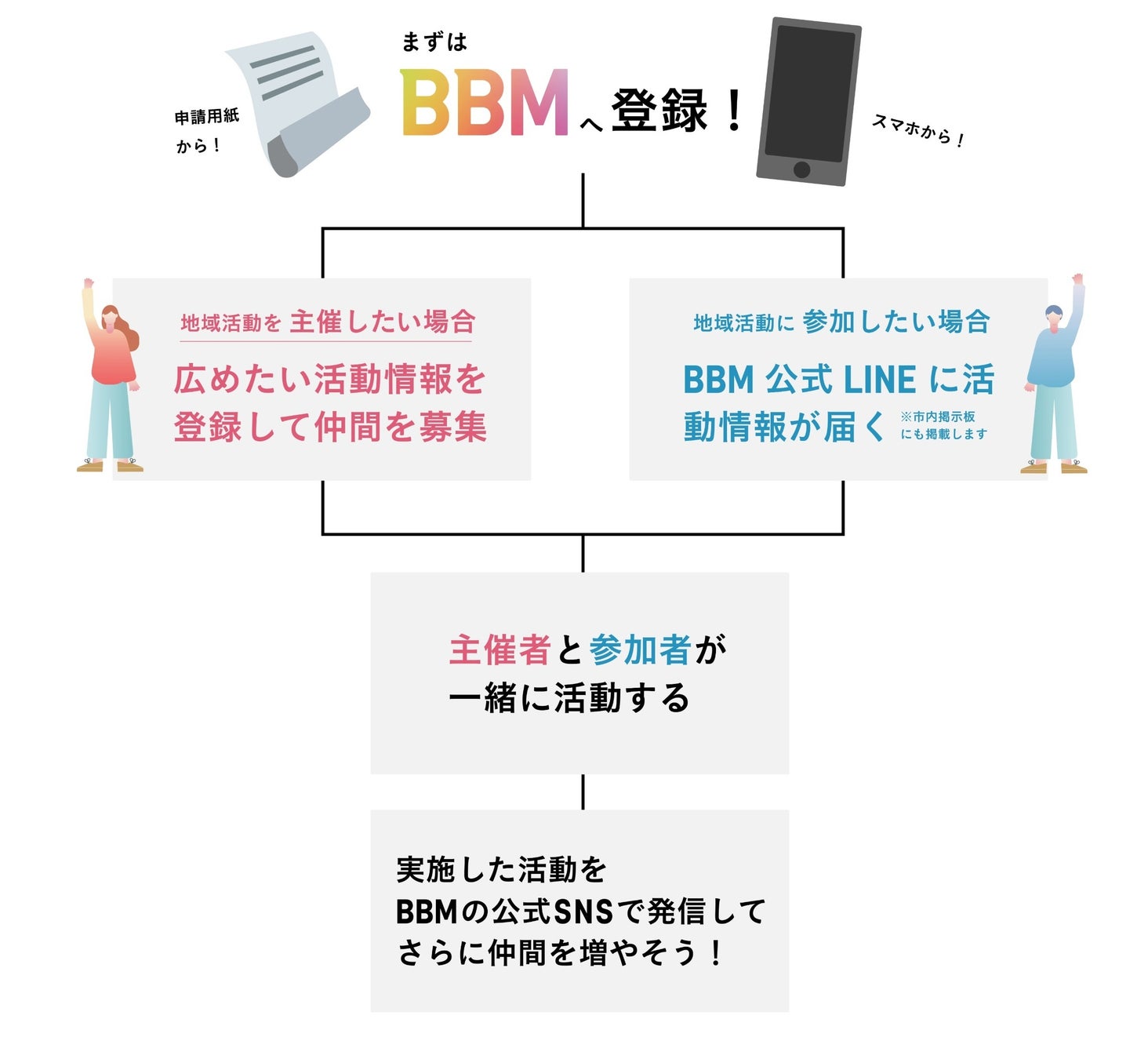BBMは、一人ひとりの「やりたい」がまちづくりの原動力となり、美しいまちを市民と共に築き上げていくことを目指しています。