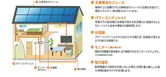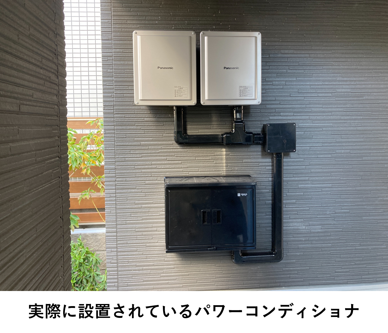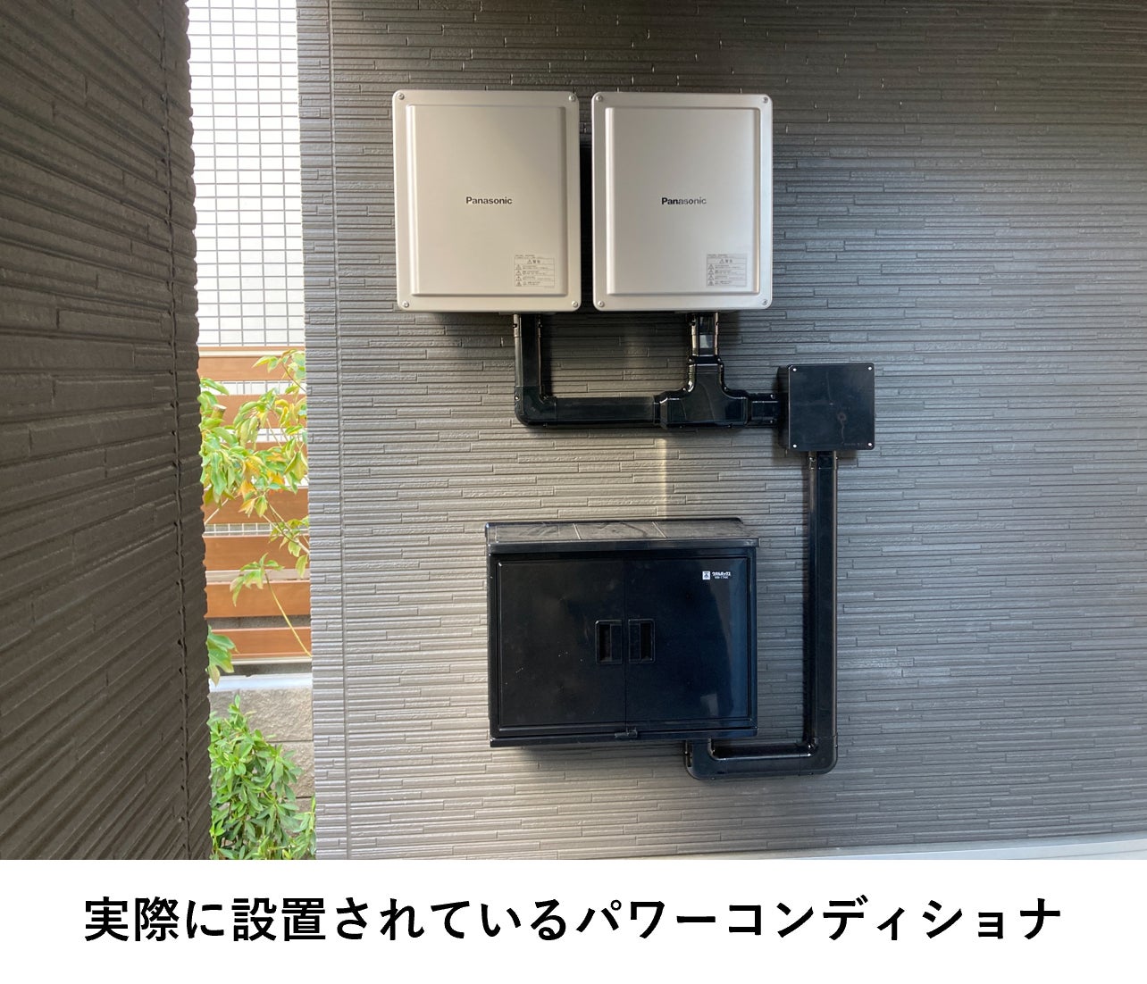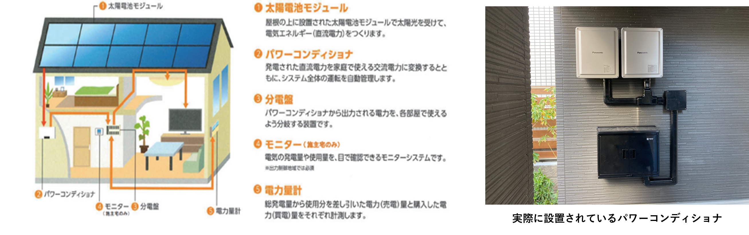 太陽電池モジュールで発電した電気は、パワーコンディショナを通して共用廊下や住戸内に送電されます。これにより、昼間の消費電力の一部を賄うことができ、災害時の日中には、非常用電源として発電した電力を使用することもできます。