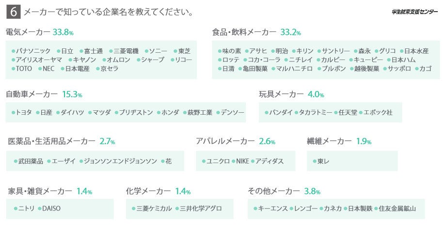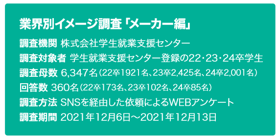 『業界別イメージ調査「メーカー編」』2021年12月13日実施【株式会社学生就業支援センター】