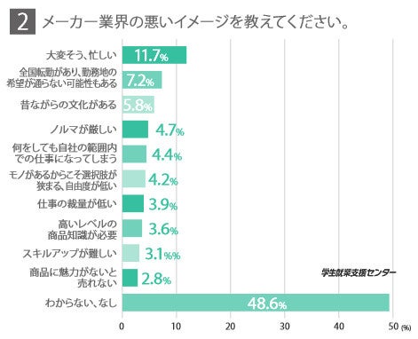 学生調査【業界別イメージ調査「メーカー編」】「安定」「ものづくり」に好感触 一方で「忙しい」「厳しい」イメージも