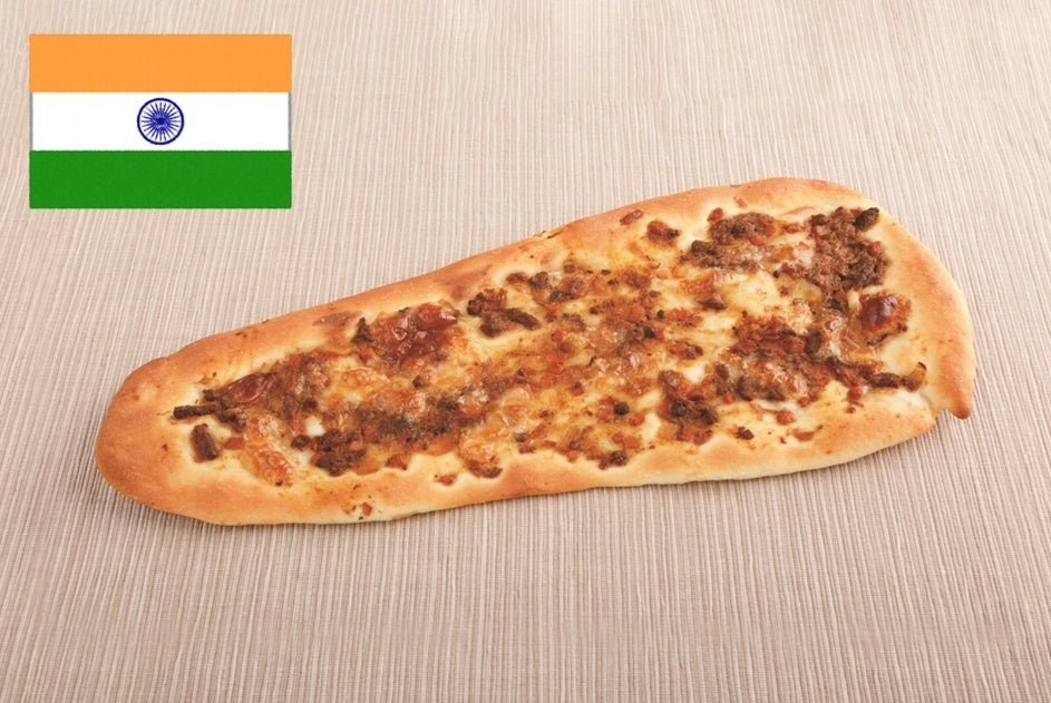 チーズを練り込んで伸ばしたナンにキーマカレーをたっぷりのせて
