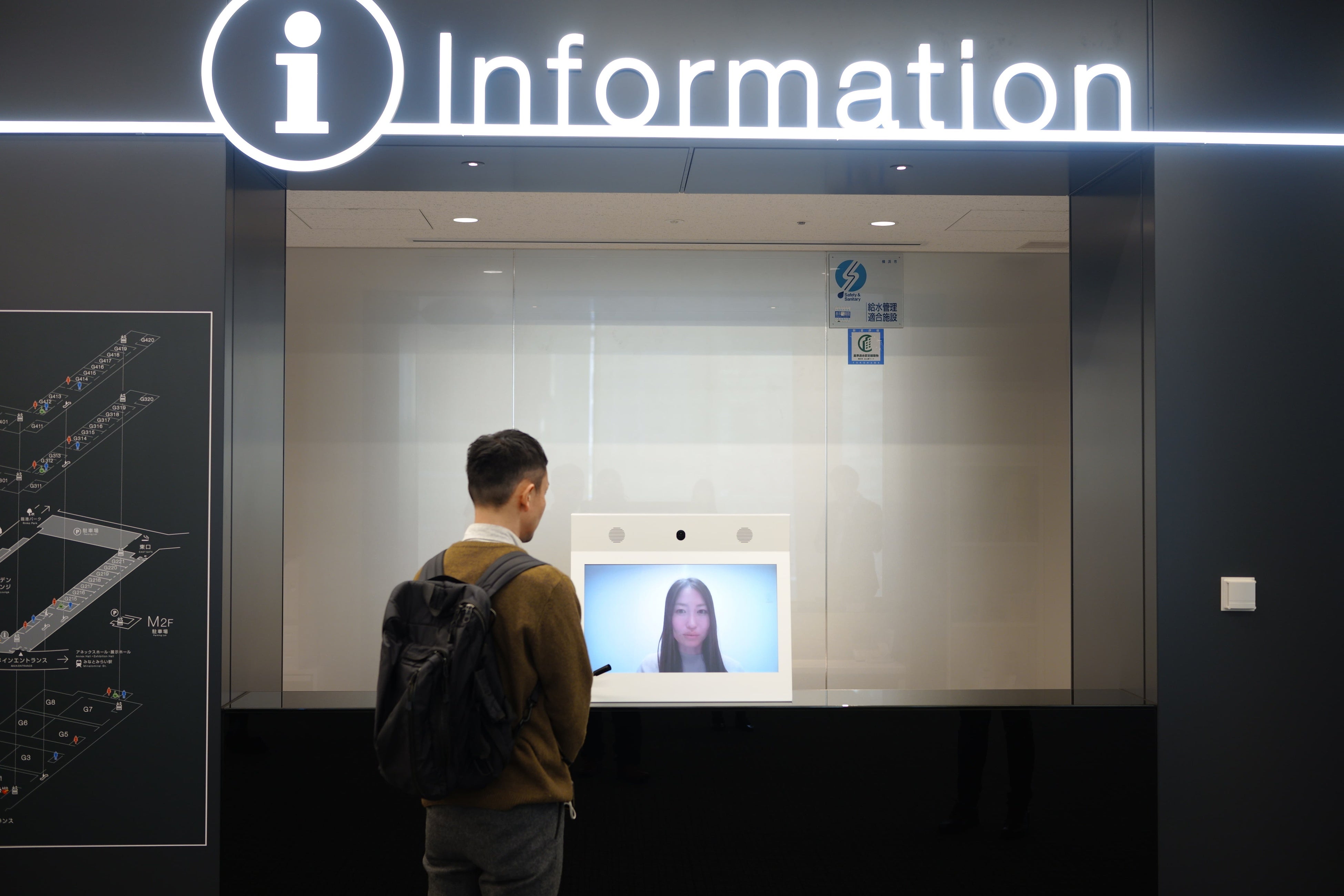 などを実現するため遠隔接客サービスを検討され、2024年4月1日より、会議センター・展示ホール・ノースの3施設にある総合案内にRURAをご導入いただくこととなりました。