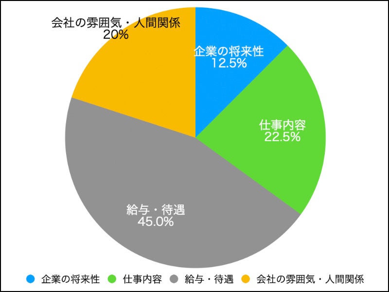 労働環境が過酷、仕事の成果を評価されない、人間関係が悪い、といった意見がありました。