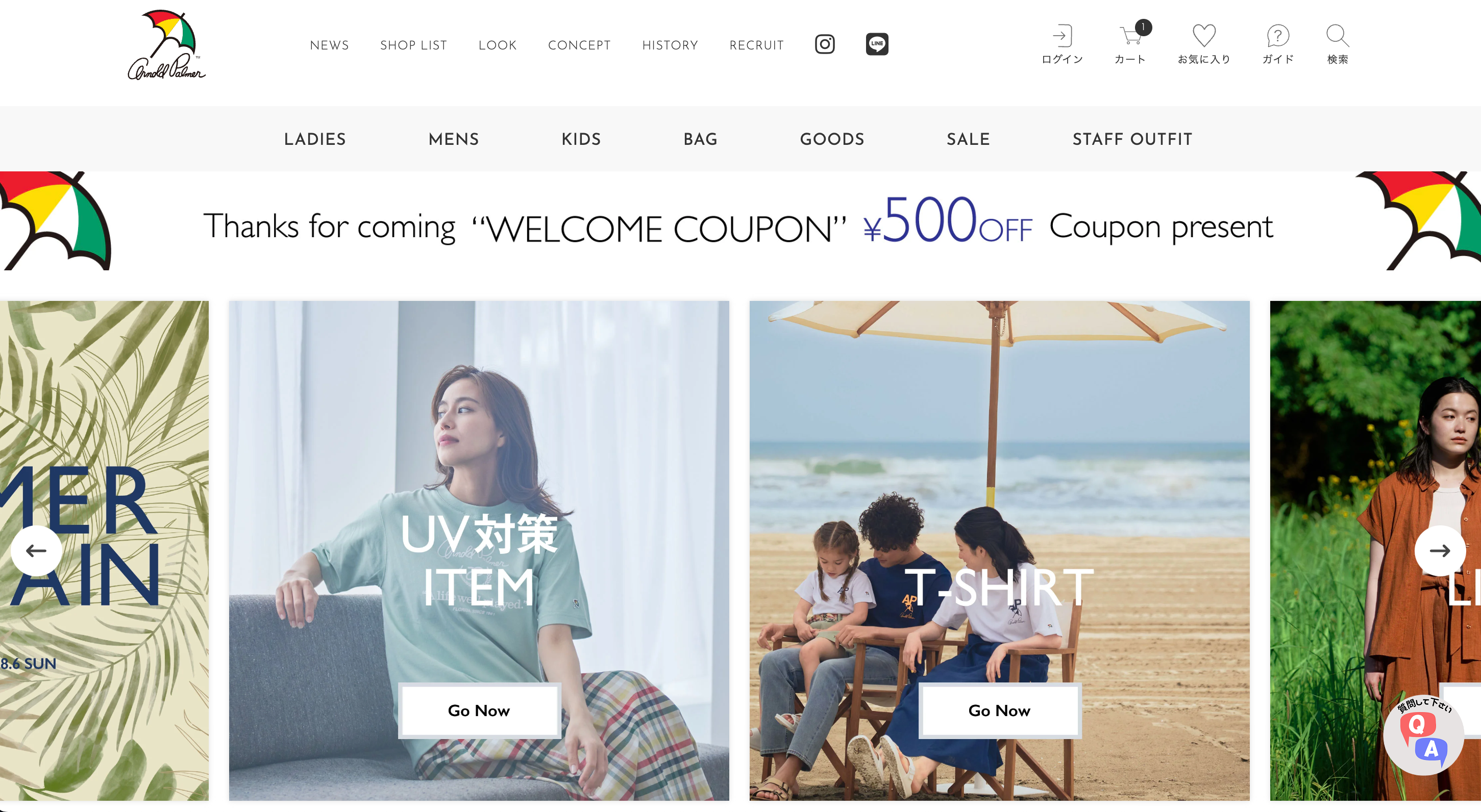 アメリカの伝説的な天才プロゴルファー、アーノルド パーマー氏の名前を冠したこのブランドの始まりは1961年。日本では『家族のカタチ』『繋がるキモチ』『変わらないカチ』をコンセプトに掲げ、性別、世代を超えてライフスタイルに寄り添える、元気で遊び心のあるファッションを提案。ブランドのアイコンである「傘ロゴ」はパーマー氏のインスピレーションから作られました。赤・黄・白・緑の「カラフルな傘ロゴのブランド」として認知され、ワンポイントマークブームの火付け役ともなりました。2021年3月より株式会社水甚がアパレル製品の製造、企画、店舗運営を展開。