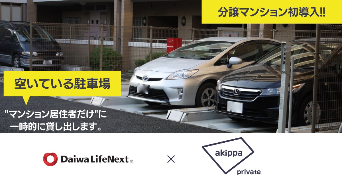 大和ハウスグループの大和ライフネクスト株式会社(本社:東京都港区、代表取締役社長:竹林 桂太朗)とakippa株式会社(本社:大阪府大阪市、代表取締役社長 CEO:金谷 元気)は、大和ライフネクストが管理を受託する分譲マンション(東京都)に対し、来客用駐車場の予約、決済などをスムーズに行える「akippa private」を提案し、2022年6月の管理組合総会にて、導入が決定しました。akippaが、2022年3月に「akippa private」の提供を開始して以来、分譲マンションでは初の導入事例となります。
