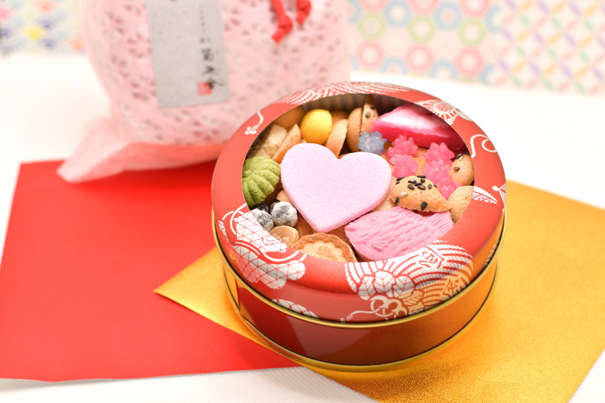 開けた途端、ピンクのハートが目に入るかわいい”ハート日和缶”も、大きな缶にびっしり和菓子が詰まってワクワク感あふれる贅沢な”特撰缶”も、どちらもおすすめです。