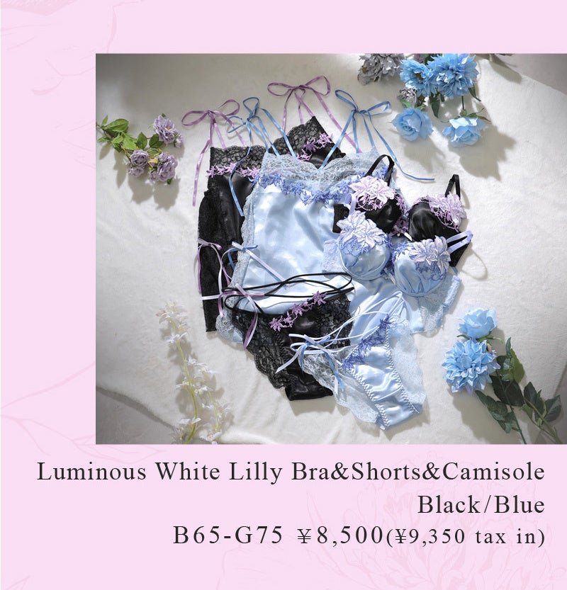花の中心部にはさり気なく光るオーロラのラメ糸を使用しショーツとチョーカーにはたっぷりのチュールフリルを。甘さたっぷりのPINKと、大人かわいいを実現するBLACKの2色展開です。