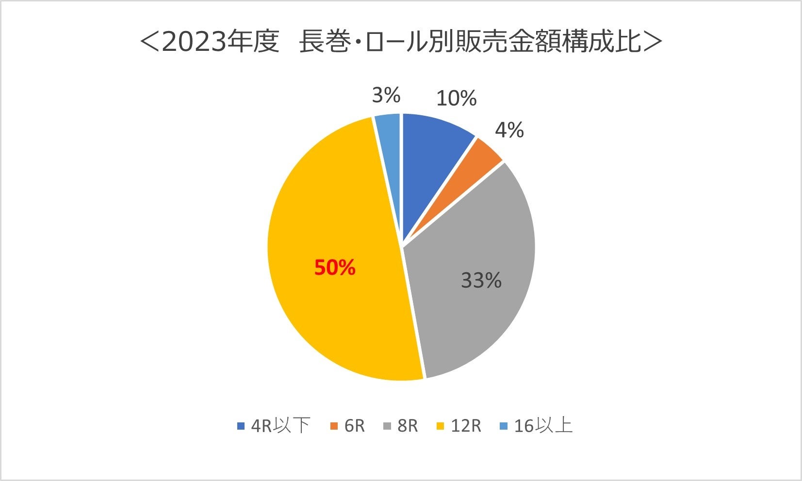 中でも長巻カテゴリー内においては12ロールの販売金額が最も高く、50%の構成比となっています。