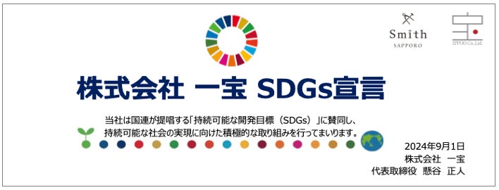 尚、株式会社一宝の『SDGs宣言』策定にあたっては、株式会社北洋銀行(取締役頭取 津山 博恒)及び、子会社の株式会社北海道共創パートナーズ(代表取締役社長 岩崎 俊一郎)に、ご支援いただきました。