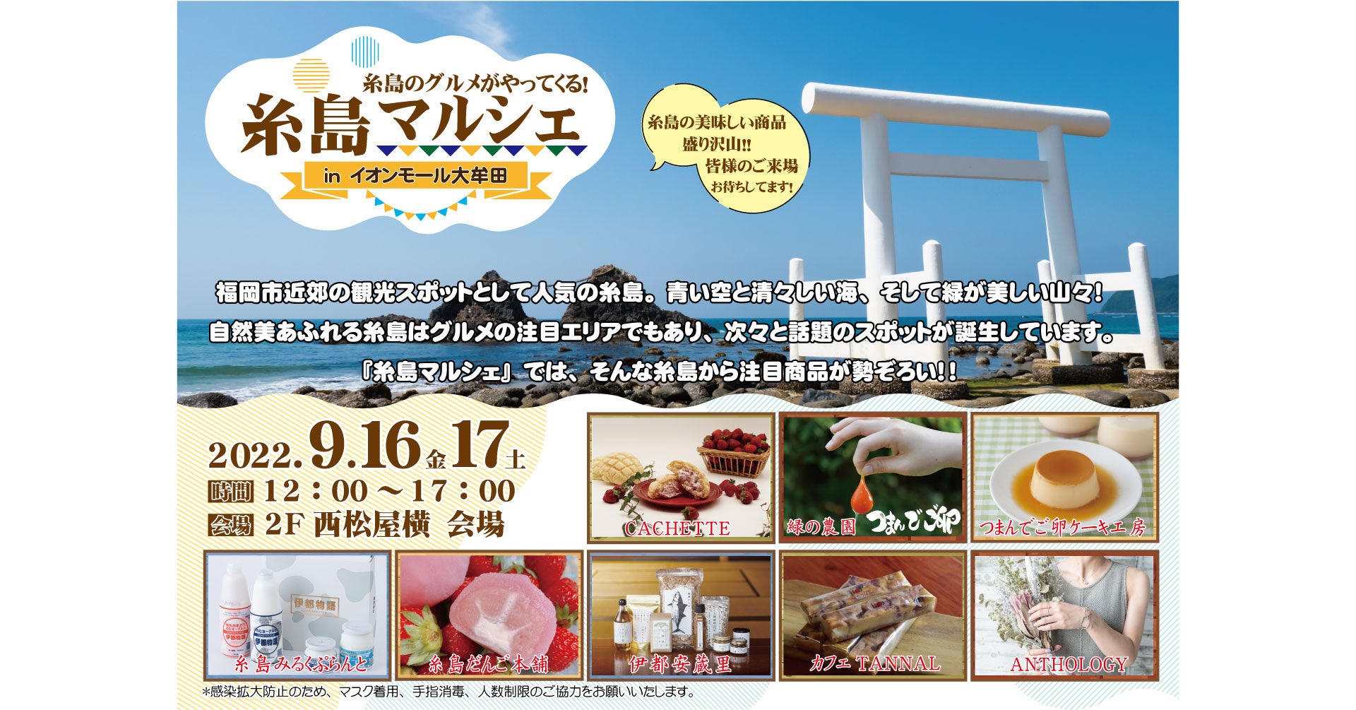 【糸島・伊都安蔵里】9/16(金)9/17(土)糸島のおいしいものが大集合する「糸島マルシェ」がイオンモール大牟田で開催!
