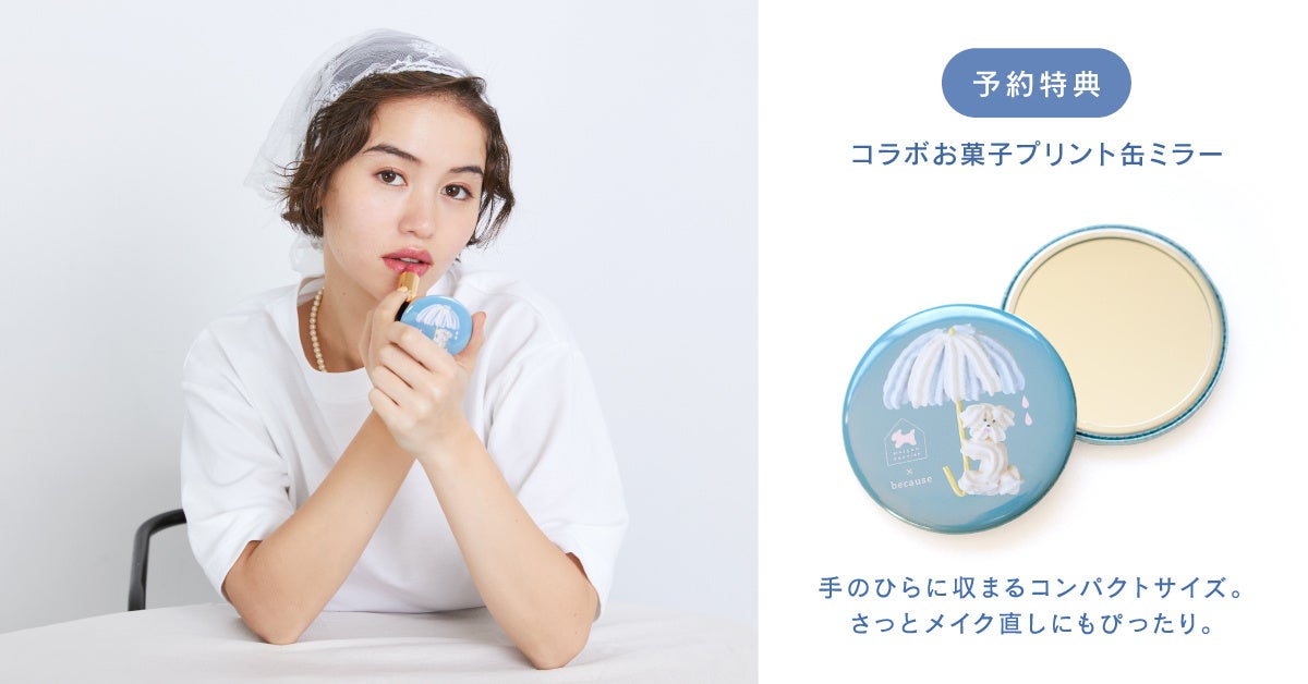 予約していただいた方には、数量限定・横尾かなさんに作成いただいたビコーズオリジナルお菓子がプリントされた缶ミラーをプレゼント!