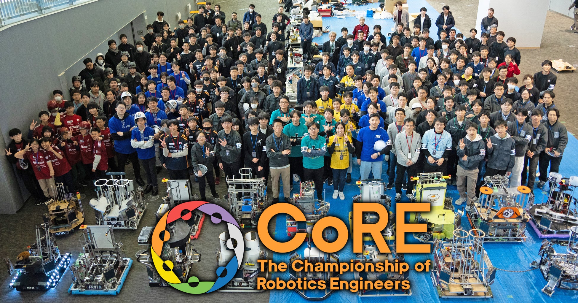 The Championship of Robotics Engineers、通称CoRE(コア)とは次世代のエンジニア”挑戦的共創人材”を育成するための、ロボット競技を核としたエンジニア選手権です。10歳以上であれば年齢制限無く、生徒・学生から現役エンジニア、初心者から経験者まで誰でも参加でき、チームで大型ロボットを開発する過程でエンジニアリングとチームワークを総合的に楽しく学べる機会を提供します。エンジニア個人やそのチーム自体の評価が最も重要であり、当日のロボット競技の結果だけではなく、チーム活動や提出資料等の総合力を加味した総合優勝制度や個人表彰制度を設けています。これにより様々な観点でエンジニア個人やチームとしての能力を測り、これまでスポットライトが当たることが少なかったエンジニア個人を評価し、本機構が定義する次世代のエンジニア“挑戦的共創人材"とチームを育成します。